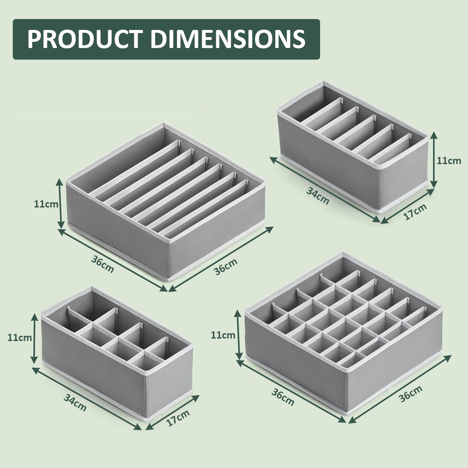 π£ππππππ ππ’π‘π§πππ‘π¦ β (4 Pcs) Storage Orgainser Set | Color – Grey | Material – Non-Woven | Product Dimensions – (2 Pcs) 36 cm x 36 cm x 11 cm, (2 Pcs) 34 cm x 17 cm x 11 cm