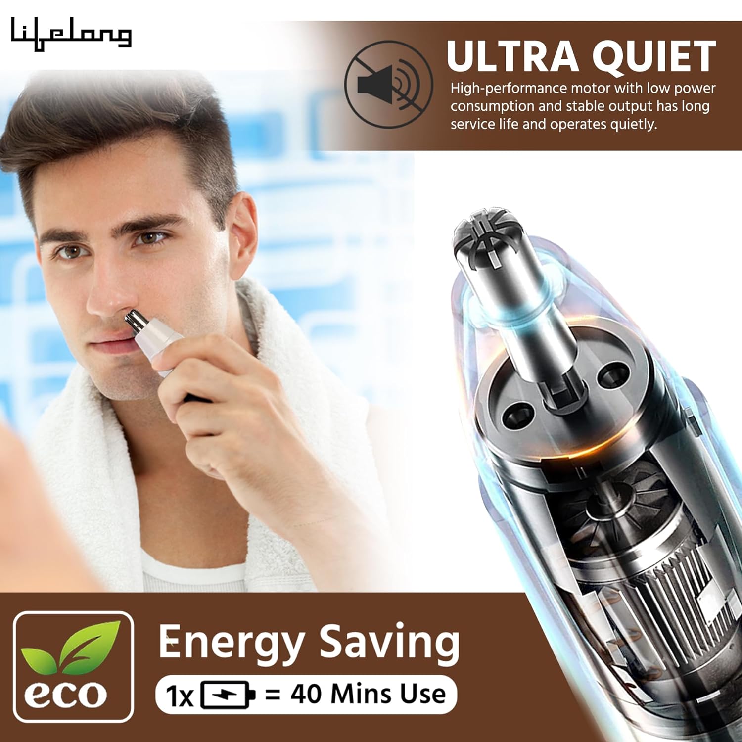 SHARP & SAFE GROOMING: Lifelong’s nose hair trimmer for men comes with automatic colllection filter and a protection cap allowing you to comfortably removes nose, ear and unwanted facial hair plus details beards and eyebrows with dual-edge blades
