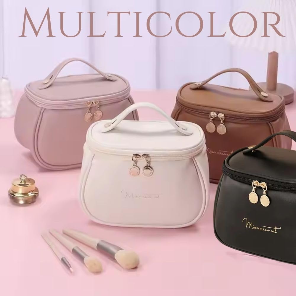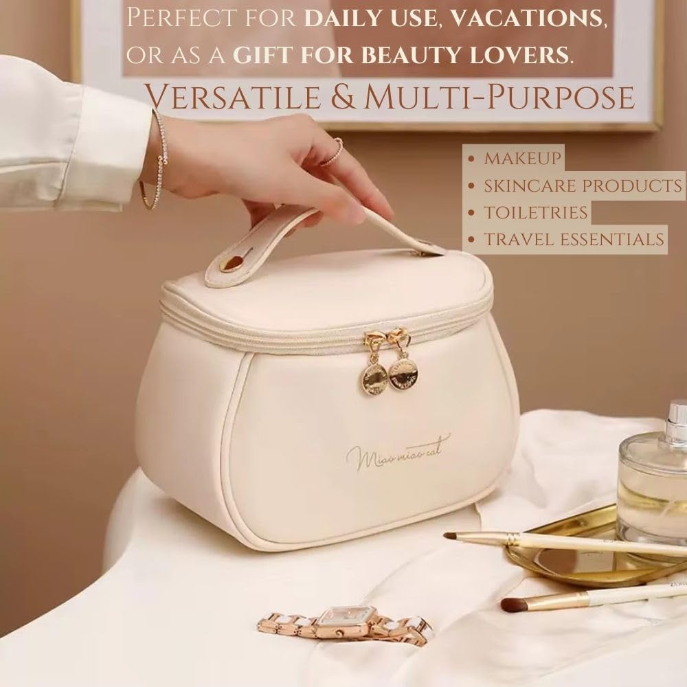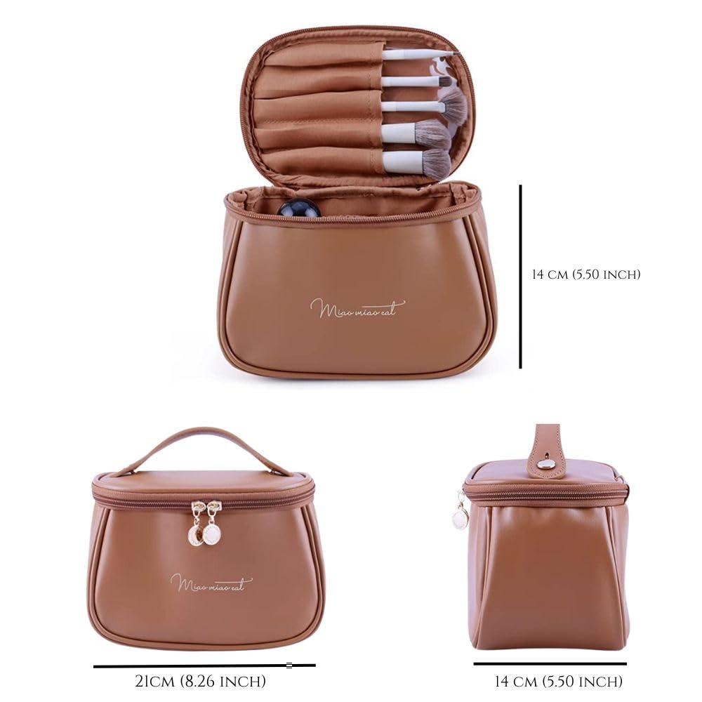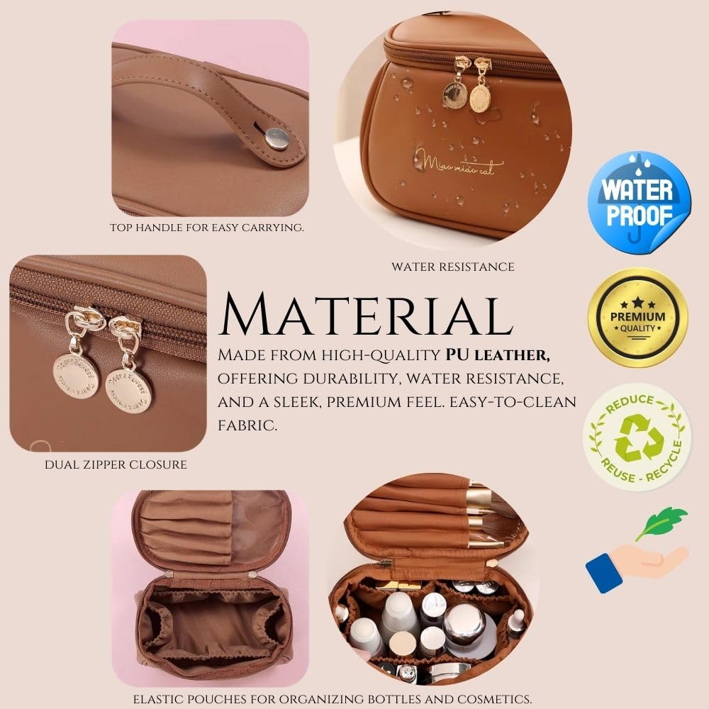Waterproof and durable: Made from high-quality PU leather, this makeup bag offers excellent water resistance, protecting your cosmetics and skincare products from spills, leaks, and everyday wear.