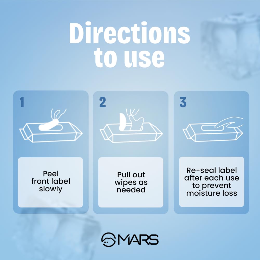 GENTLE FACIAL CLEANSING: MARS Refreshing Wet Wipes are designed for gentle facial cleansing, effectively removing dirt, oil, and makeup residue from the skin