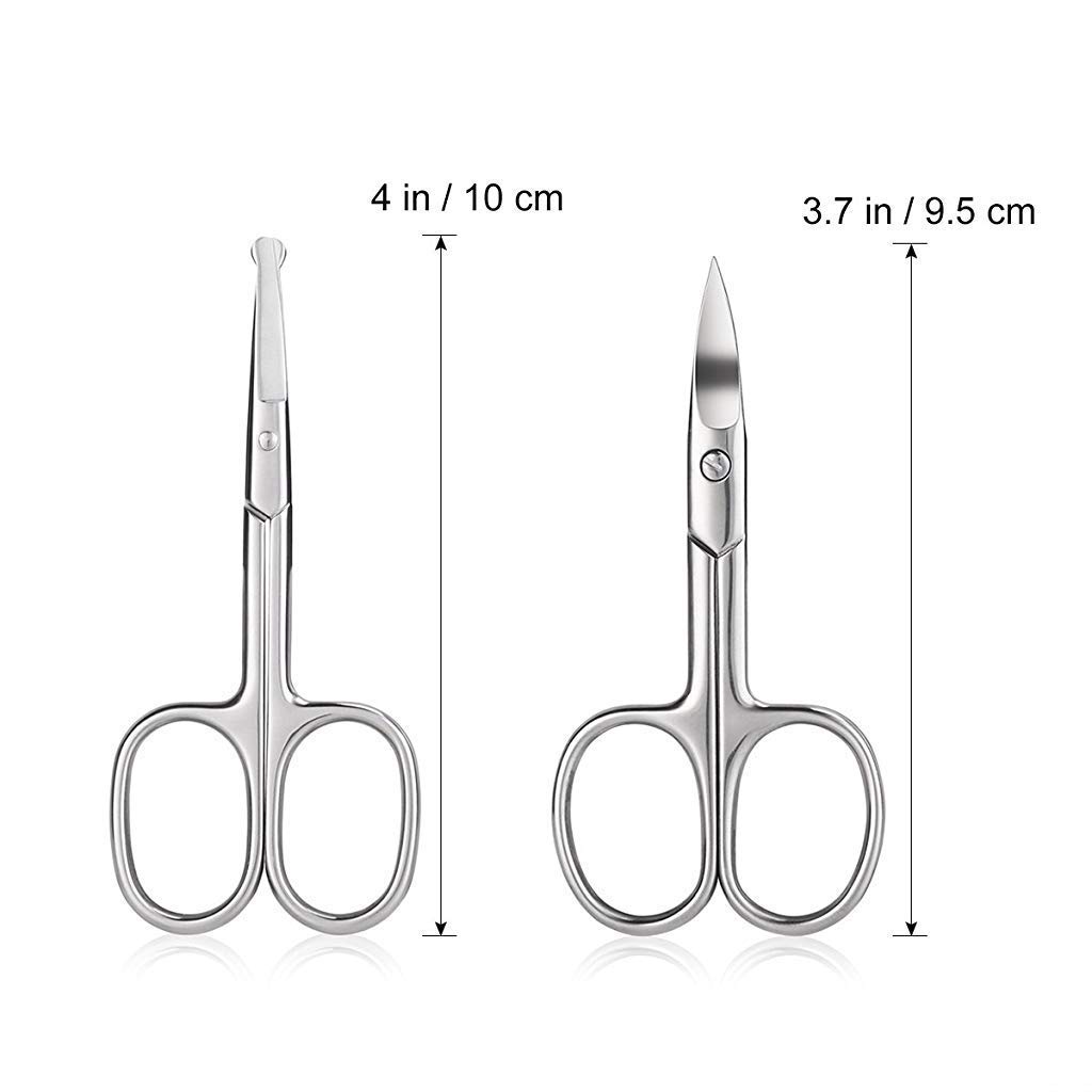 For Beards And Moustaches: the short-bladed sharp-tipped scissors are made especially for trimming and shaping beards and moustaches. Bent blade and safety tip. For those stray hairs you don’t want: the round-tipped pair is for clipping hairs at your nose and ears, with the round tips, you don’t have to worry about stabbing yourself