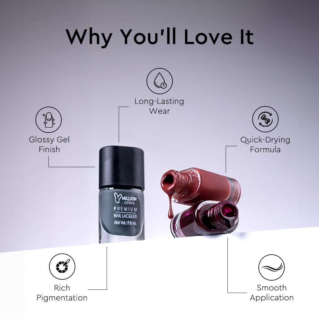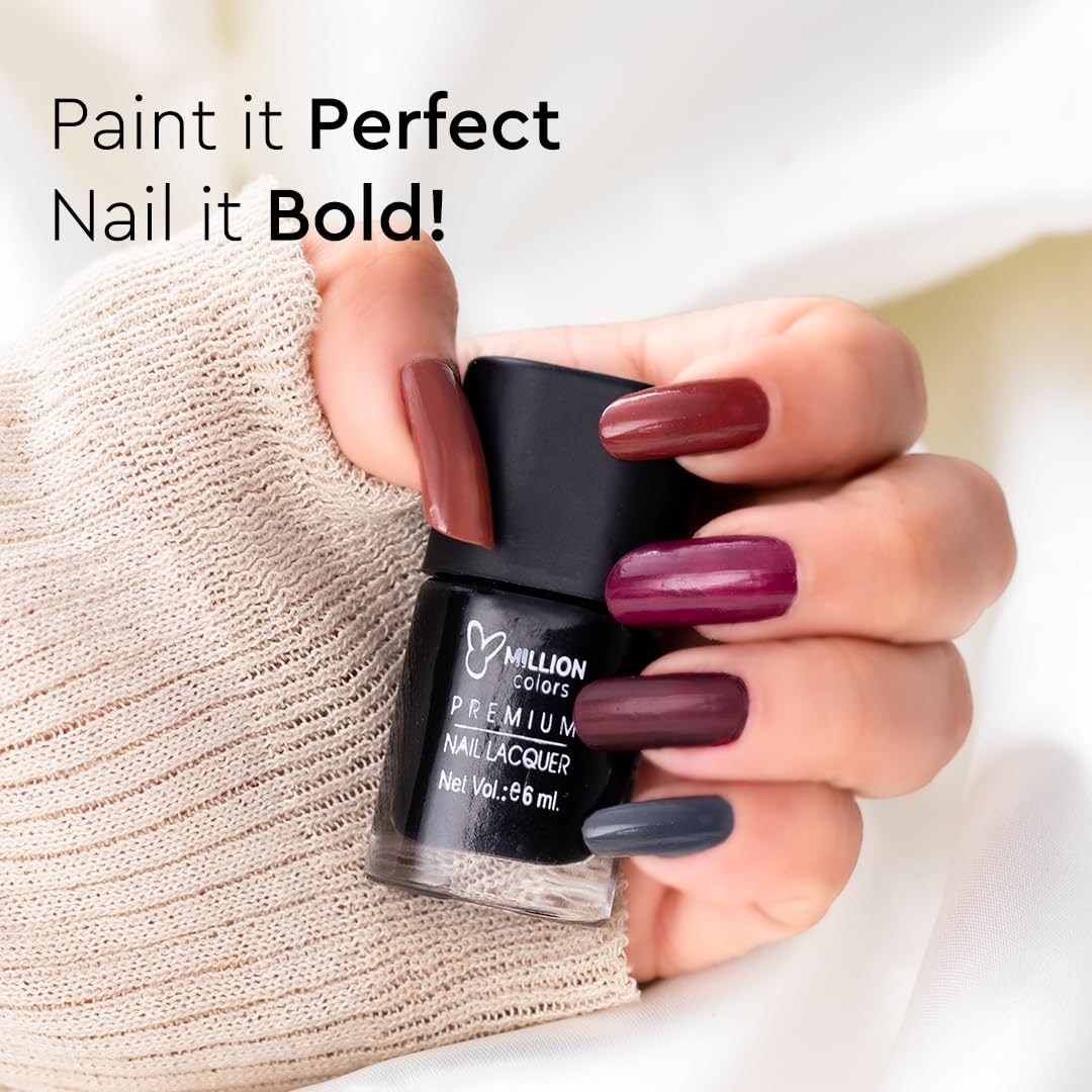 Long-Lasting Nail Polish – Million Colors nail polish combo that seals and locks the color to extend its wear & shine for up to 6 days on your nails.
