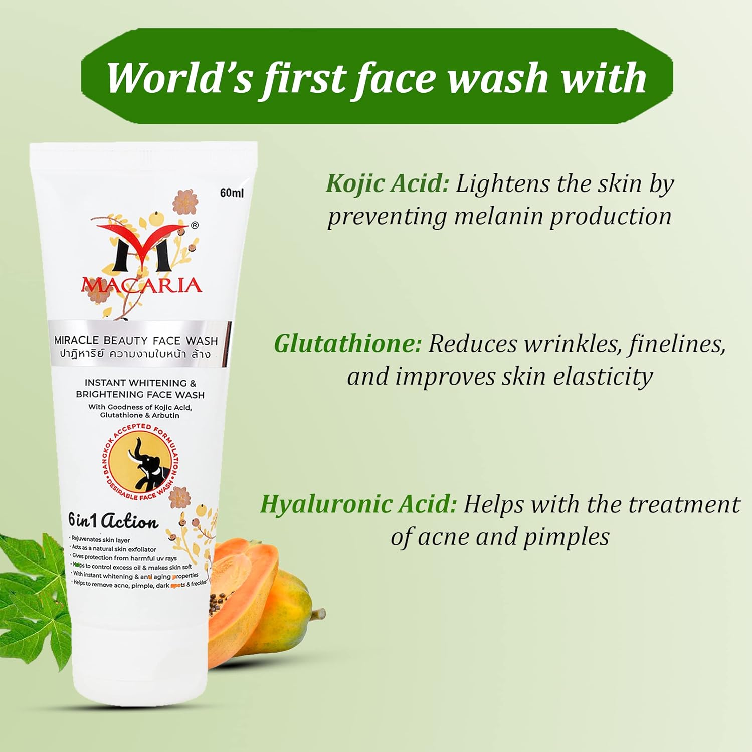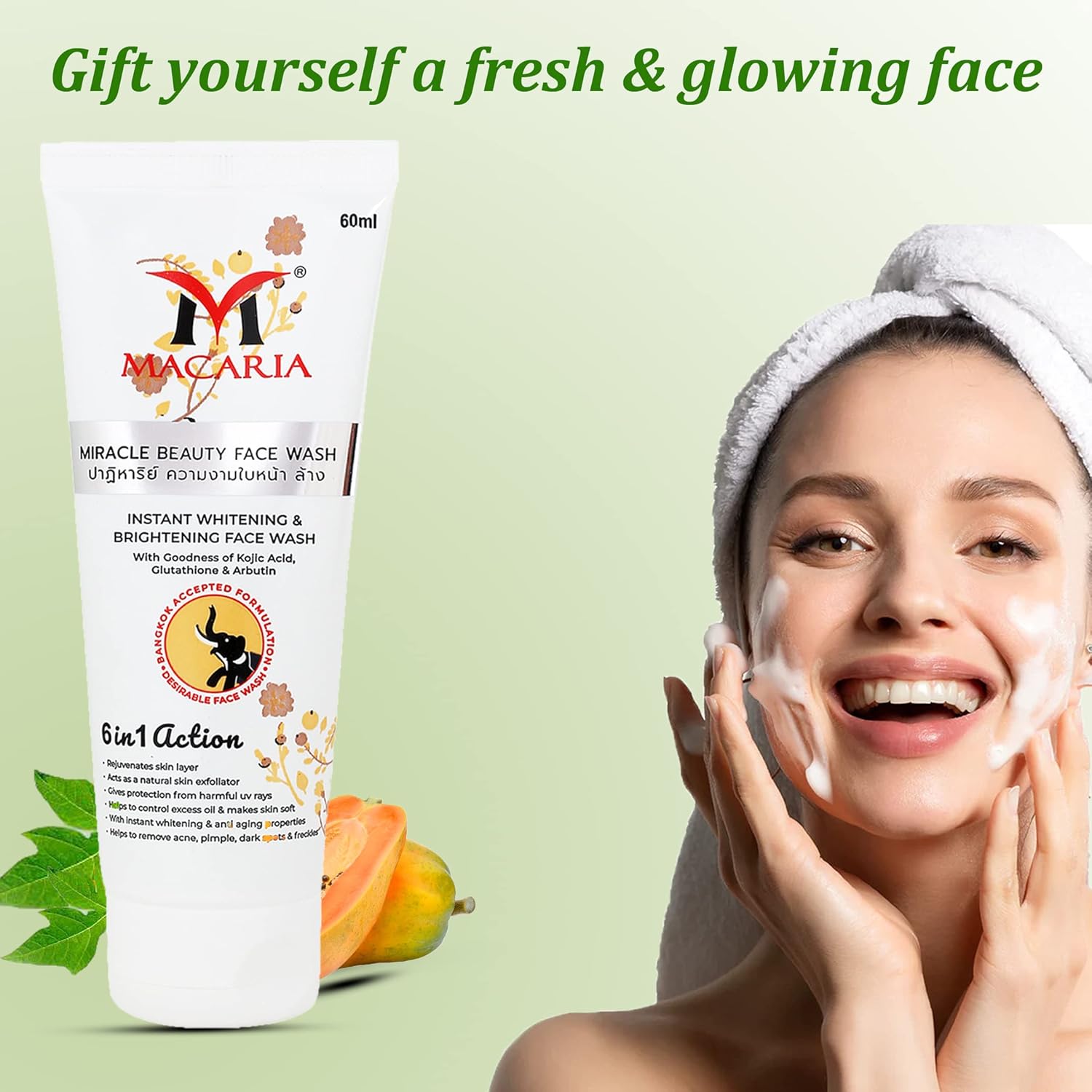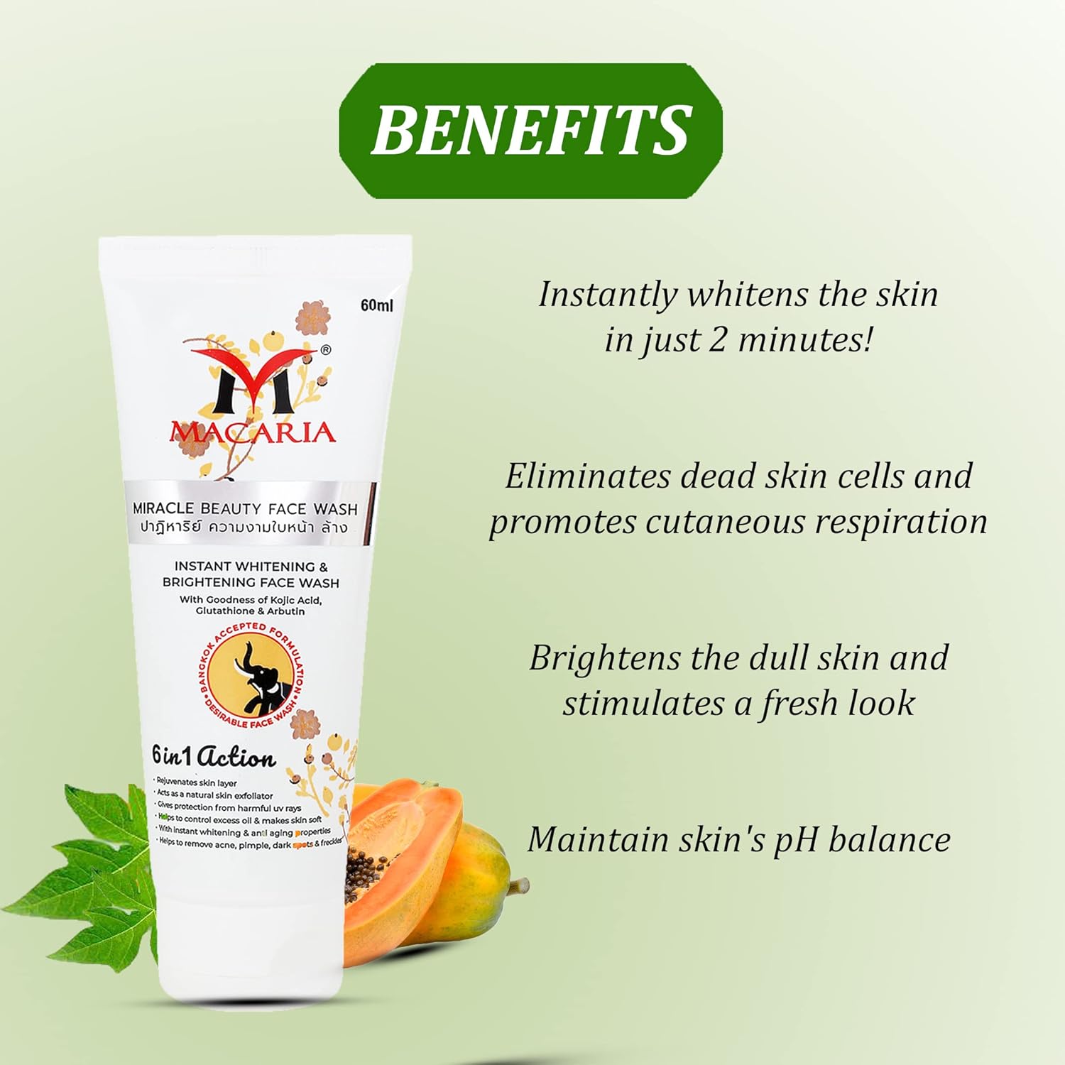 Advanced Bangkok Technology: Experience the transformative power of Miracle Beauty Face Wash, formulated with cutting-edge Advanced Bangkok Technology for instant skin whitening, brightening, and lightening in just 2 minutes.