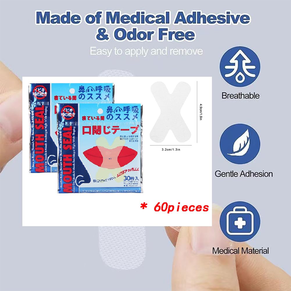 【Package includes】2 packs /60PCS X type mouth tape for sleeping.Ideal for travel and daily life use,promoting nasal breathing during sleep.Energize you for the next day.