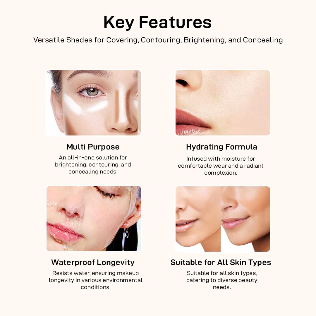 【TIME-SAVING SOLUTION】: Streamline your makeup routine by having essential concealer, contour, and foundation options all in one palette, reducing the need for multiple products.