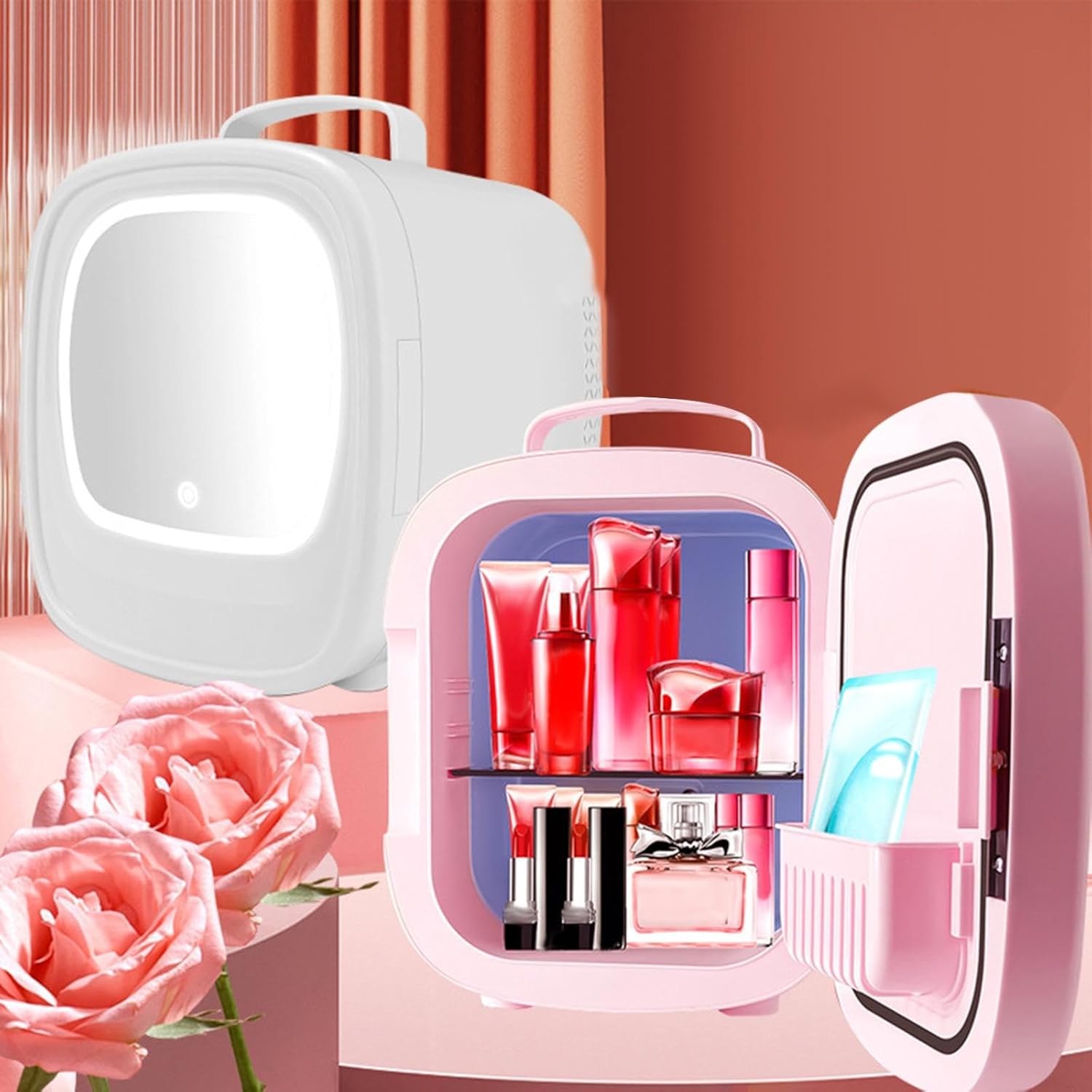 with Led Makeup Mirror:Personal Fridge with led makeup mirror, which is convenient to use, ideal gift for women on birthday,holiday.