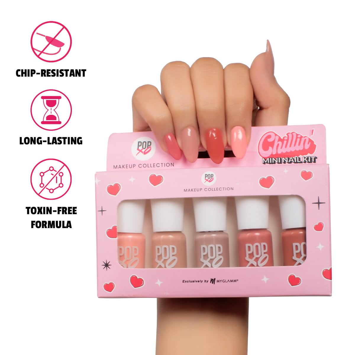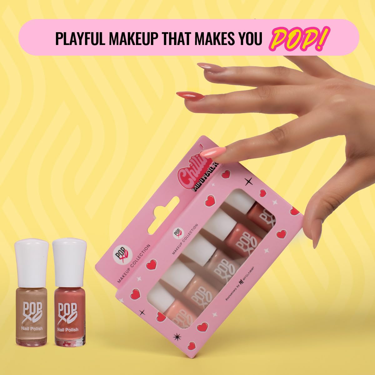 Chillin’ like a villain. Chillin’ is a ravishing nail kit of 5 chip-resistant nail polishes in breezy nudes and blushing pinks. It is perfect for a goes-with-everything mani. This thoughtfully curated selection of everyday neutrals is #AnythingButBasic. A set of freshly painted nails are every girl’s ideal state of living. While frequent salon visits can be heavy on the pocket, there is one fun trick that won’t break the bank. Bring the priceless feeling of new nails home with POPxo Makeup Collection’s Chillin’ Mini Nail Polish Set. It includes 5 nail paints in nude and blush shades that are perfect for a chilled out vibe. This mini nail polish collection is made with a chip resistant formula and offers a long-lasting wear. Its high gloss effect gives your at-home manicure a salon like shine. Are you ready to be your own nail technician?