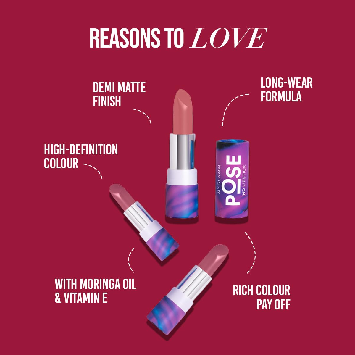 Pucker up ladies, your pout is about to get a dose of high-definition colour. The MyGlamm POSE Matte Lipstick offers long-lasting, demi-matte finish. It’s enriched with Moringa Oil and Vitamin E to keep your lips plump and hydrated all day long. The colour payoff is intense & fantastic; and because of its high-definition pigment, it covers any lip pigmentation, resulting in a smooth, soft-focus finish.