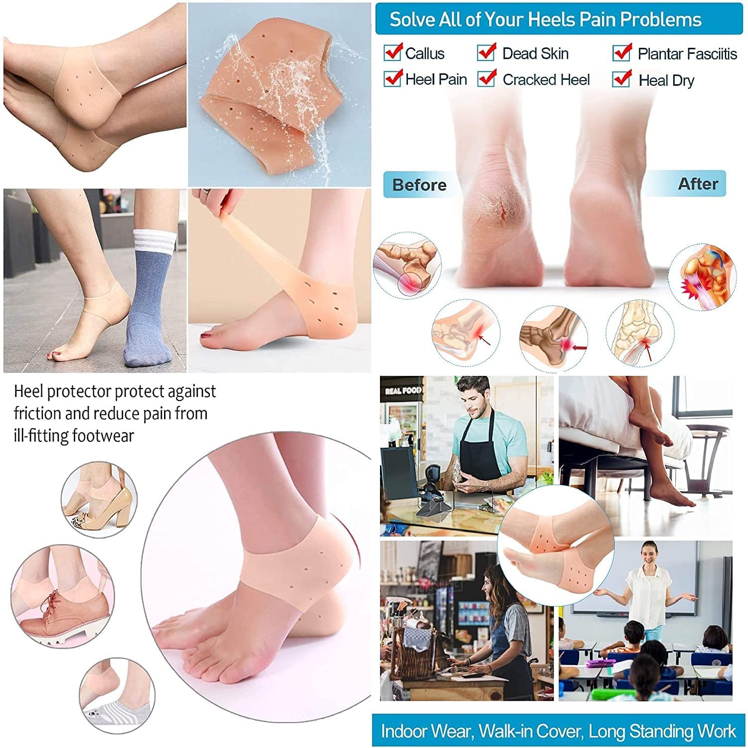 Heel Pain Relief – Silicone Heel Pads are great to reduce heel pain from plantar fasciitis, achilles, tendonitis tendon, heel spurs, sore heel, and also can repair dry and cracked heels.