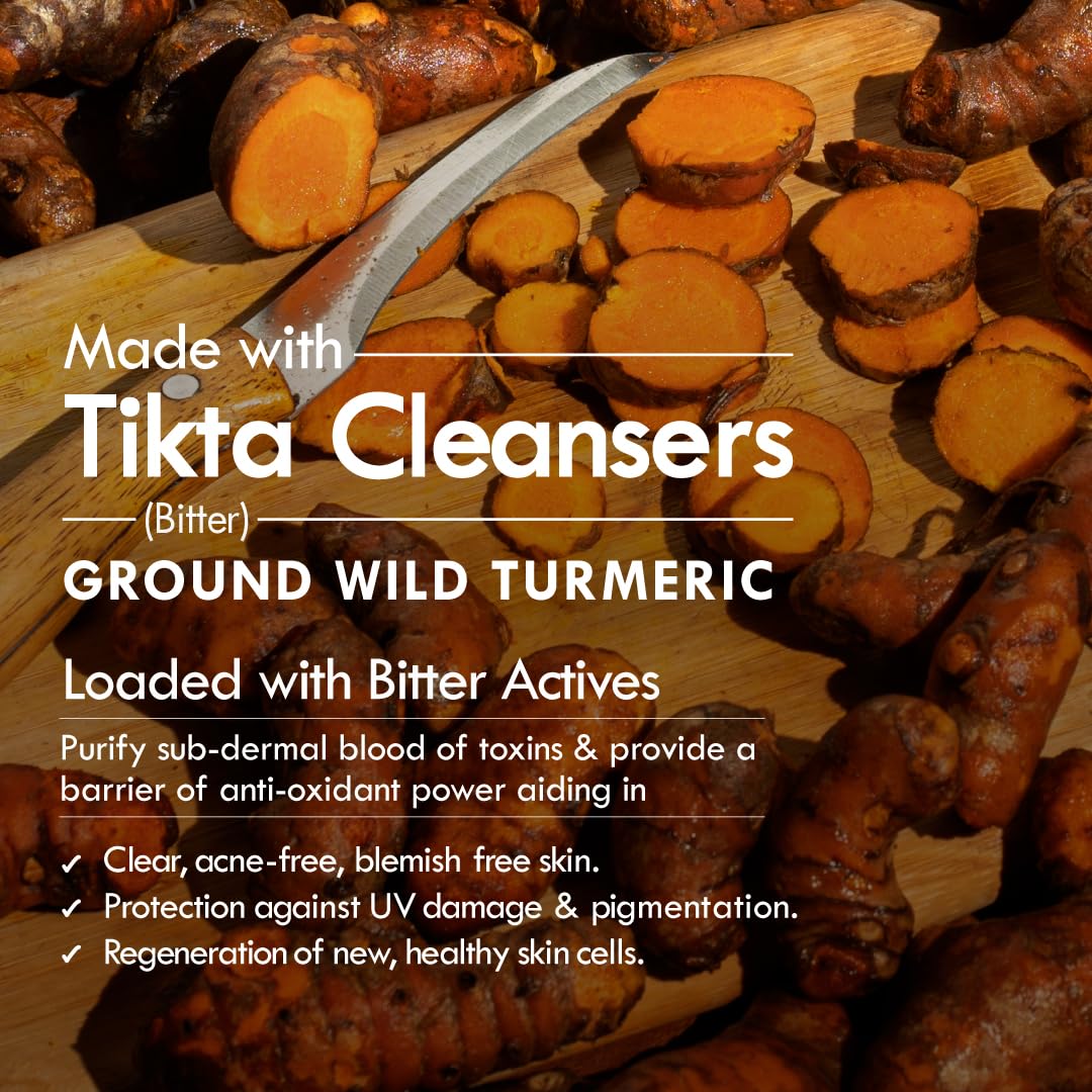 Ingredients, Ground Wild Turmeric, Loaded with bitter activities. Purify sub-dermal blood of toxins & provide a barrier of antioxidant power aiding in clear, acne-free, blemish free skin protection against UV damage & pigmentation, regeneration of new, healthy skin cells