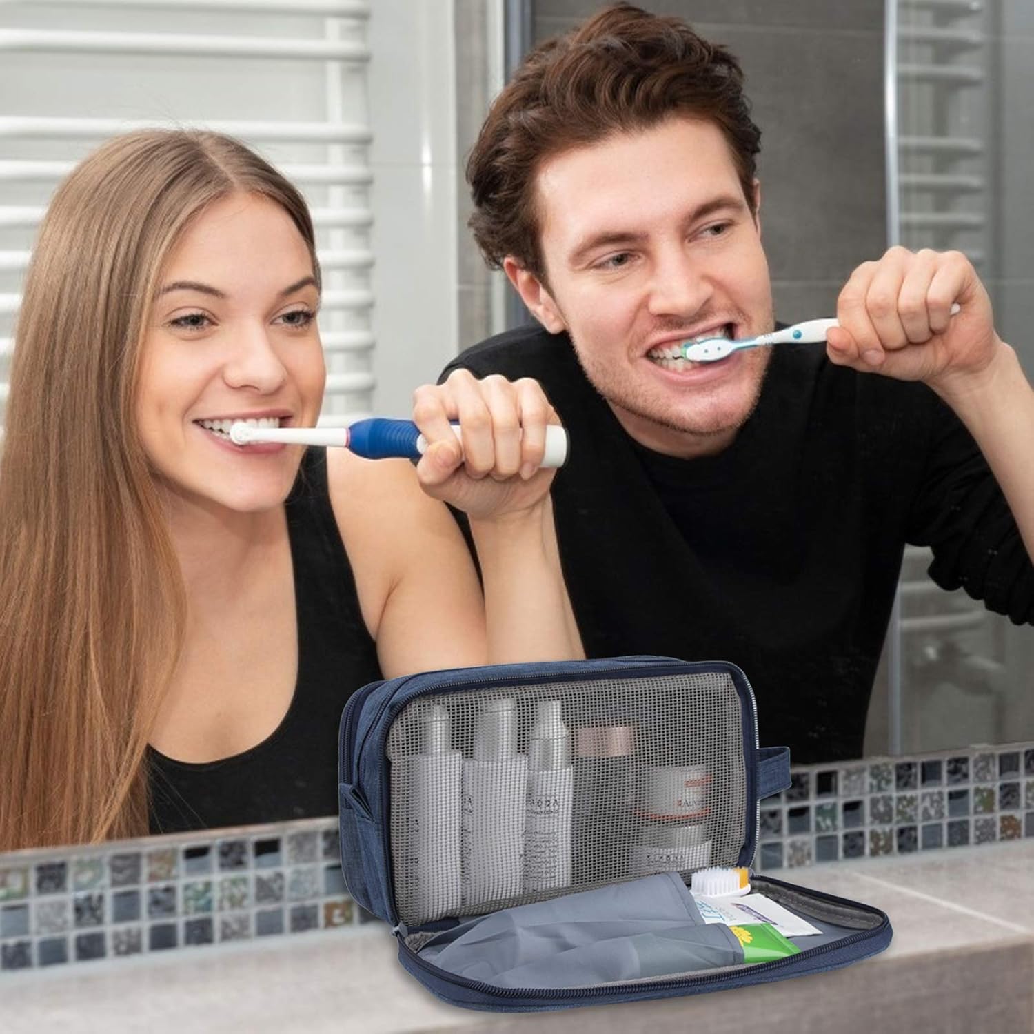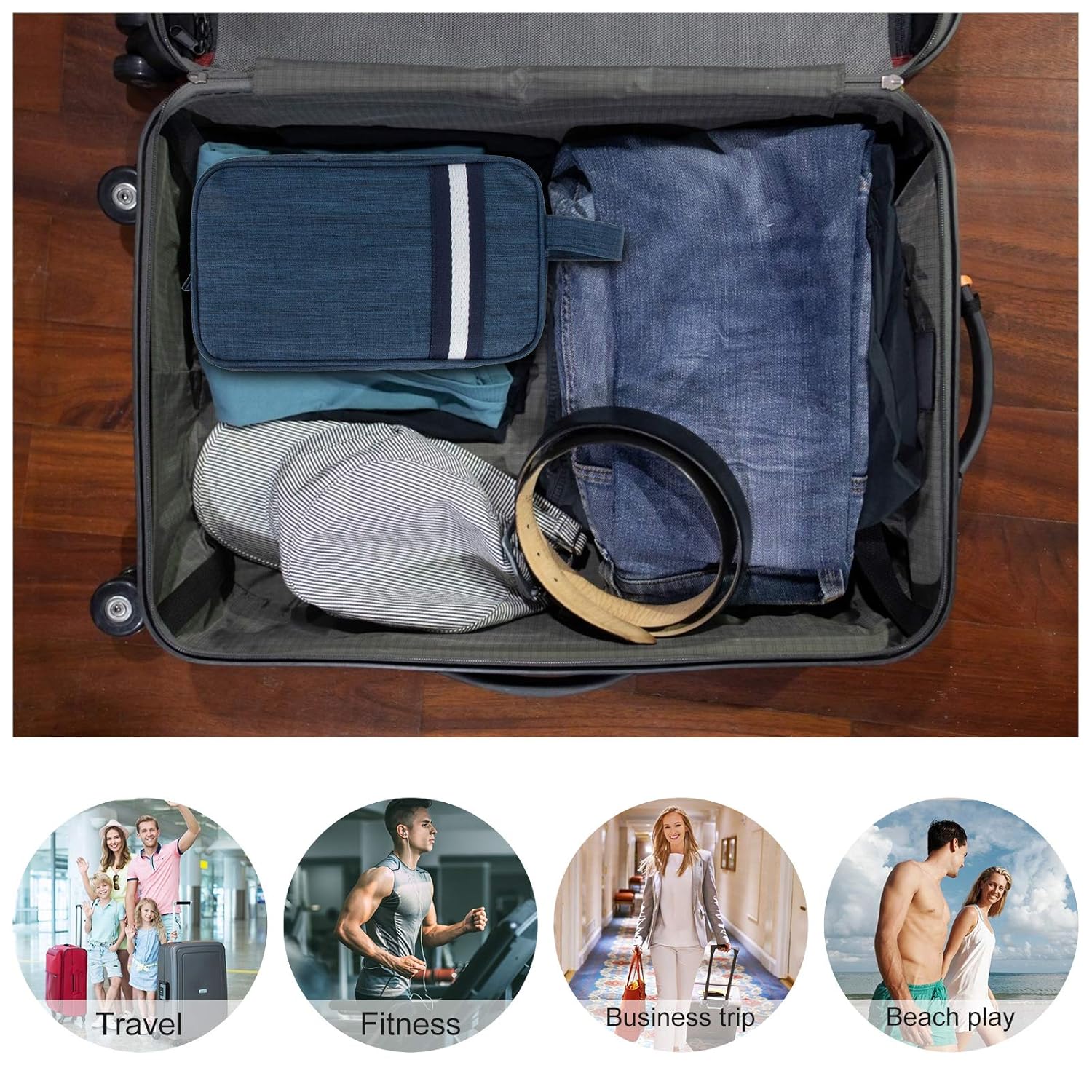 It can be a toiletry wash bag, travel make-up storage organiser, bathroom bags, a household storage package, a shaving kit bag, a carry-on airline bag, a double kit, etc. Easy to store in a travel bag / travel weekly bag / travel bag.