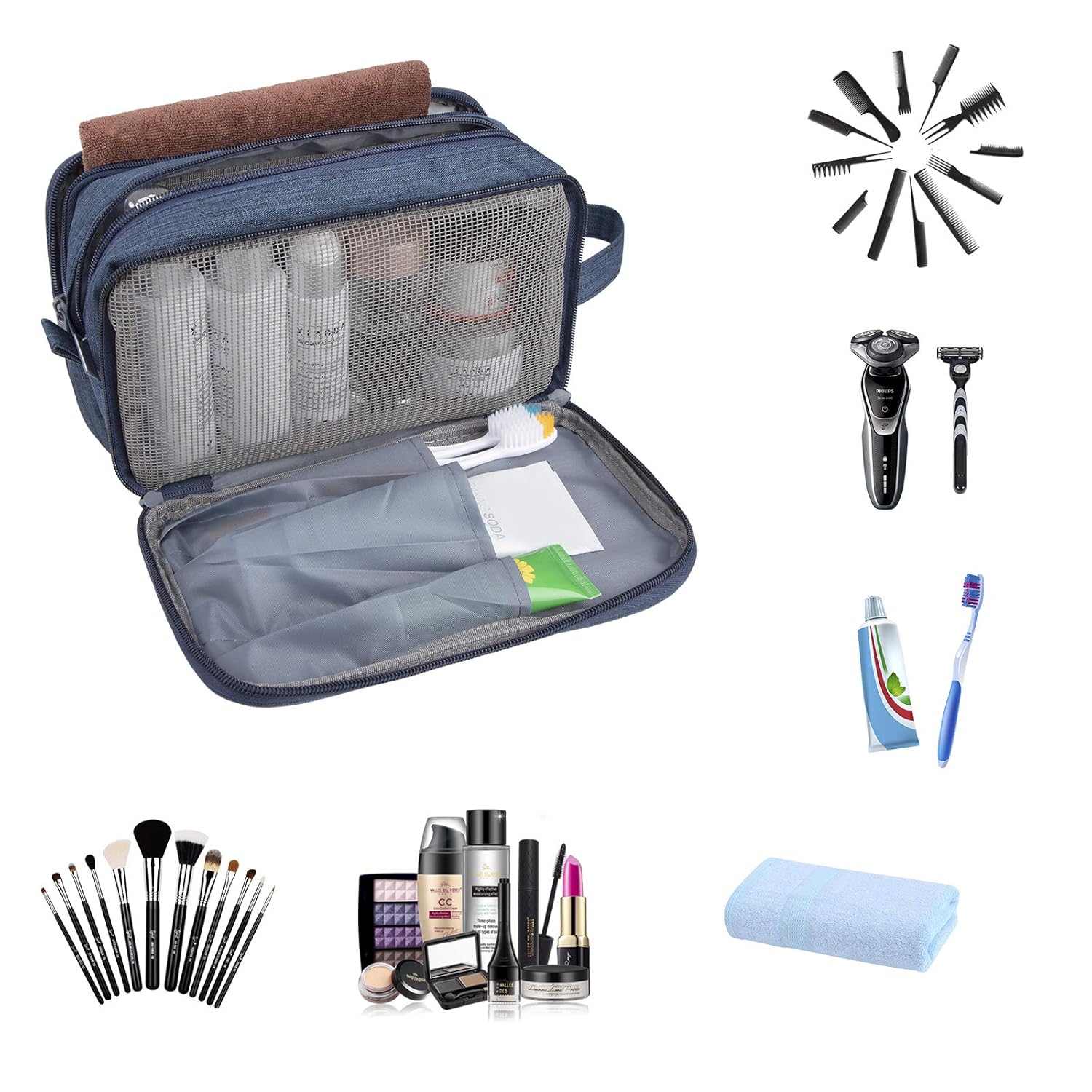 Wet & Dry Separation Design The travel shaving organizer bag features a wet separation bag that can separate wet towels or clothes from other items. No more worrying about dripping wet clothes messing up your bag.
