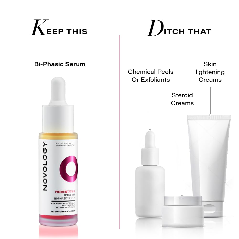 Novology Bi-Phasic Serum for Hyperpigmentation, Dark Spots, Acne Marks and Uneven Skin Tone| Dry-Combination Skin | 28ml