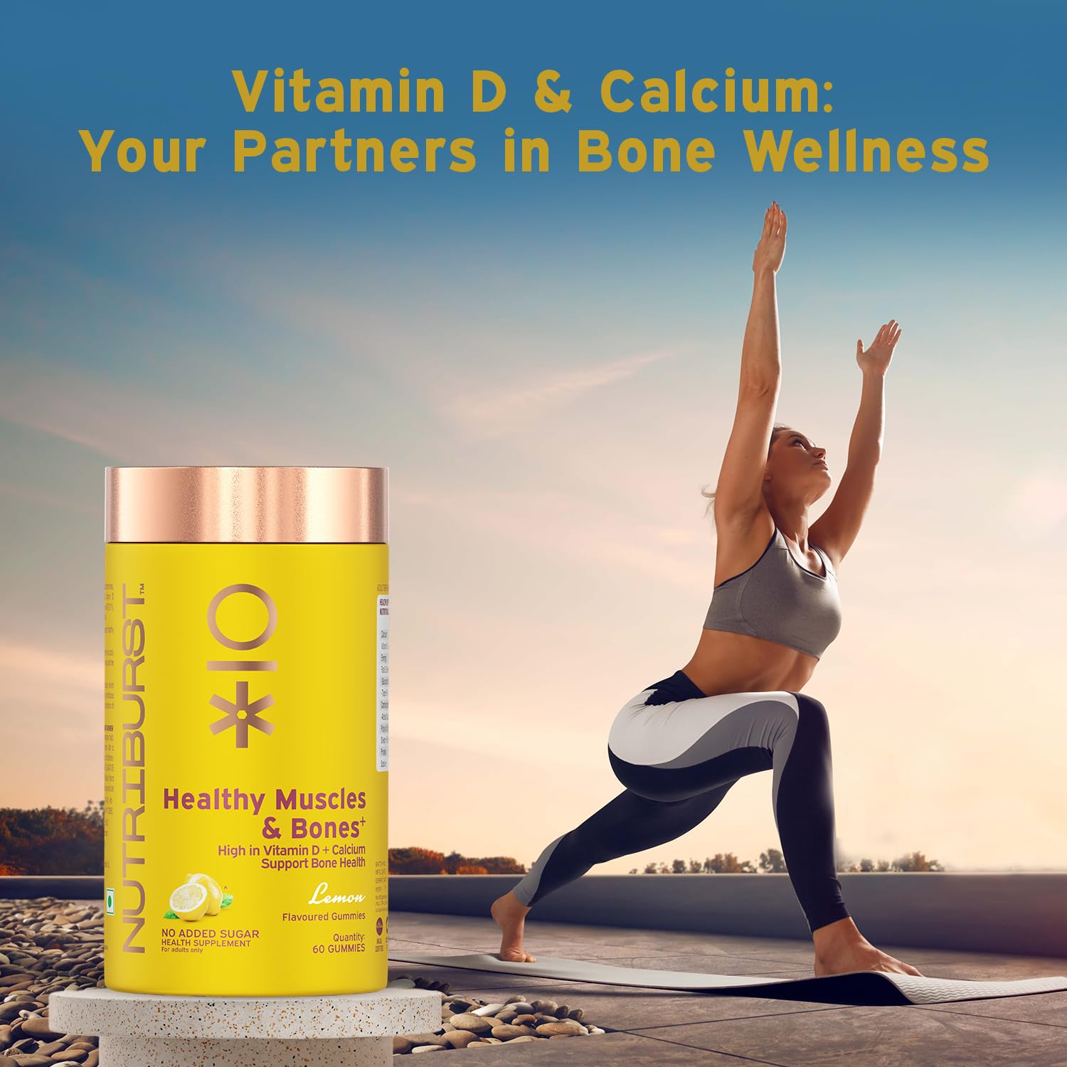 HEALTHY MUSCLE & BONES GUMMIES : The Healthy Muscles & Bones Gummies feature a refreshing lemon flavor and provide crucial Calcium and Vitamin D for strong bones and muscles.