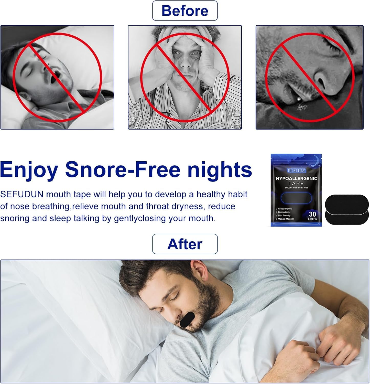 Powerfull Anti Snoring Aid: Clinical studies have proven that the use of mouth tape is an effective aid for snoring, also preventing instances of lapsed breathing. This innovative solution guides you to breathe through your nose, fostering improved airflow and increased oxygen intake.