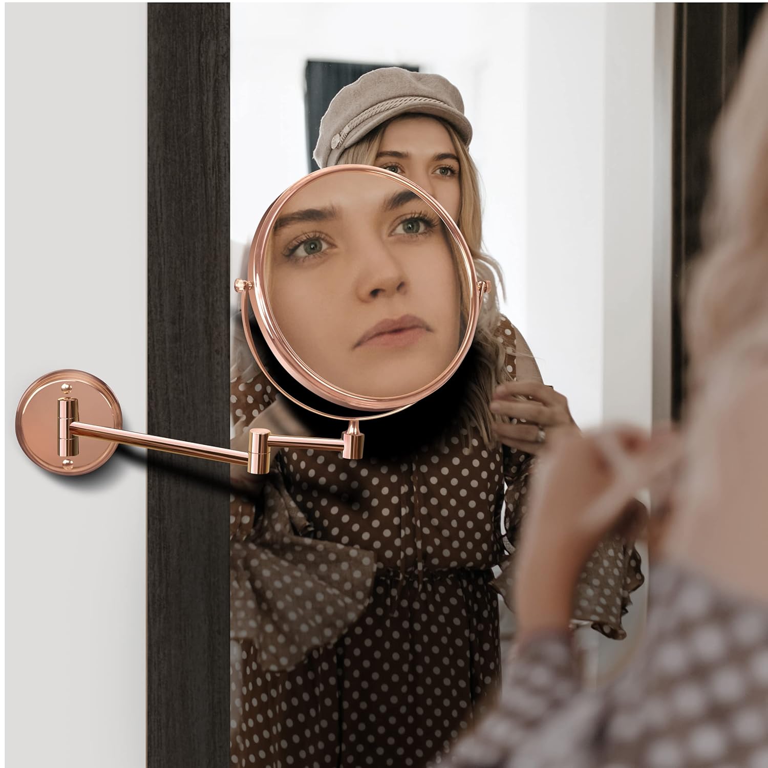 ๐๐ผ๐๐ฏ๐น๐ฒ-๐๐ถ๐ฑ๐ฒ๐ฑ ๐บ๐ถ๐ฟ๐ฟ๐ผ๐ฟ: Magnifying mirror flips from a full-face view (1x) to a detailed (5x) magnification for precise eyeliner, brows, and mascara. This mirror magnifies on the basis of your distance from the mirror, it is due to physical feature of concave mirrors and not a defect.