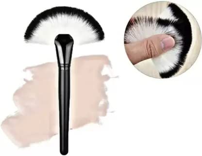 Features :large fan shape with soft nylon hair ideal for professional or home use size: approx. 21 x 11 cm / 8.26 x 4.33 inch material: nylon color: white, black package includes:1x face powder brush with 2 puff.