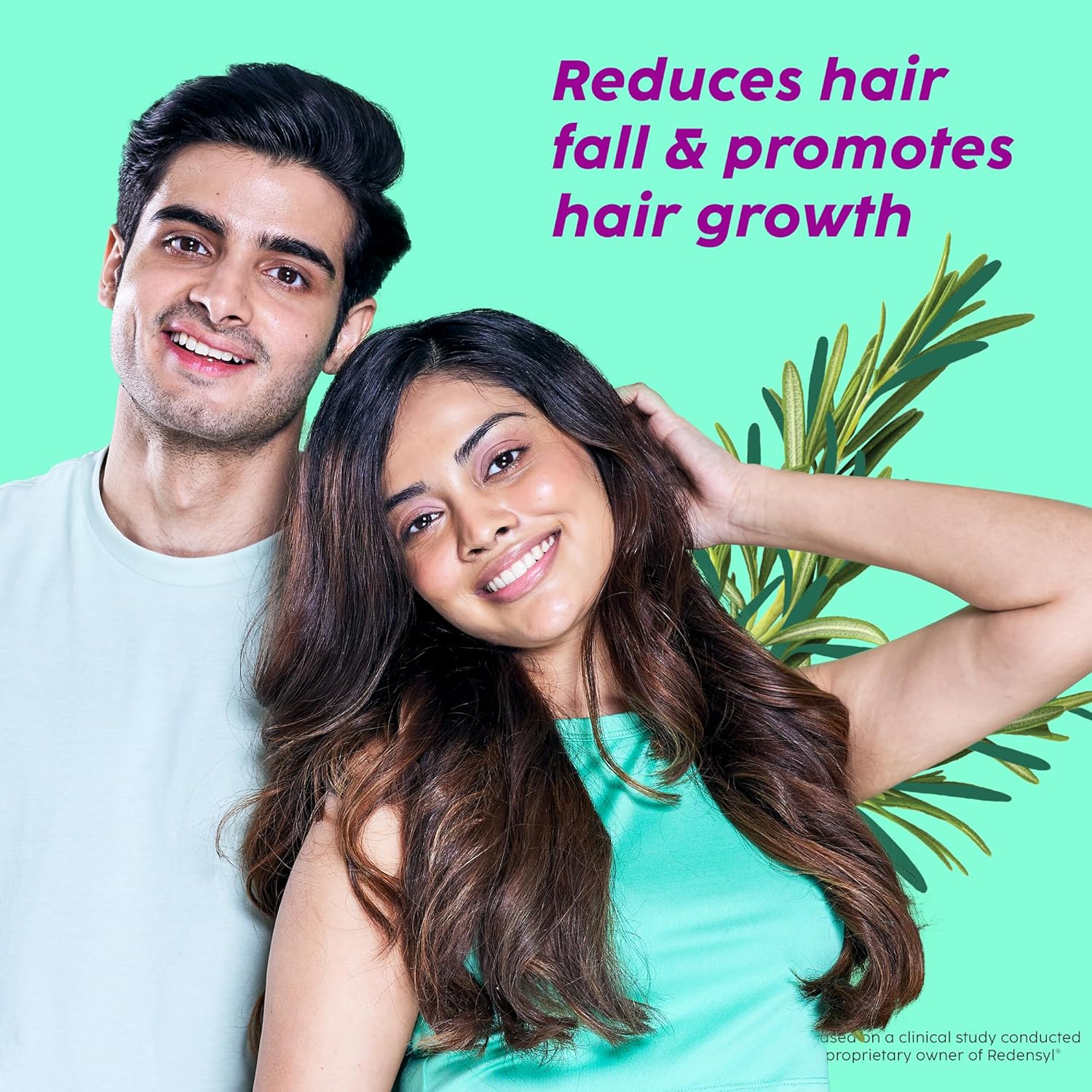 Reduces hair fall: Rosemary extract seeps into the scalp and rosemary oil improves blood circulation to the scalp leading to a reduction in hair fall