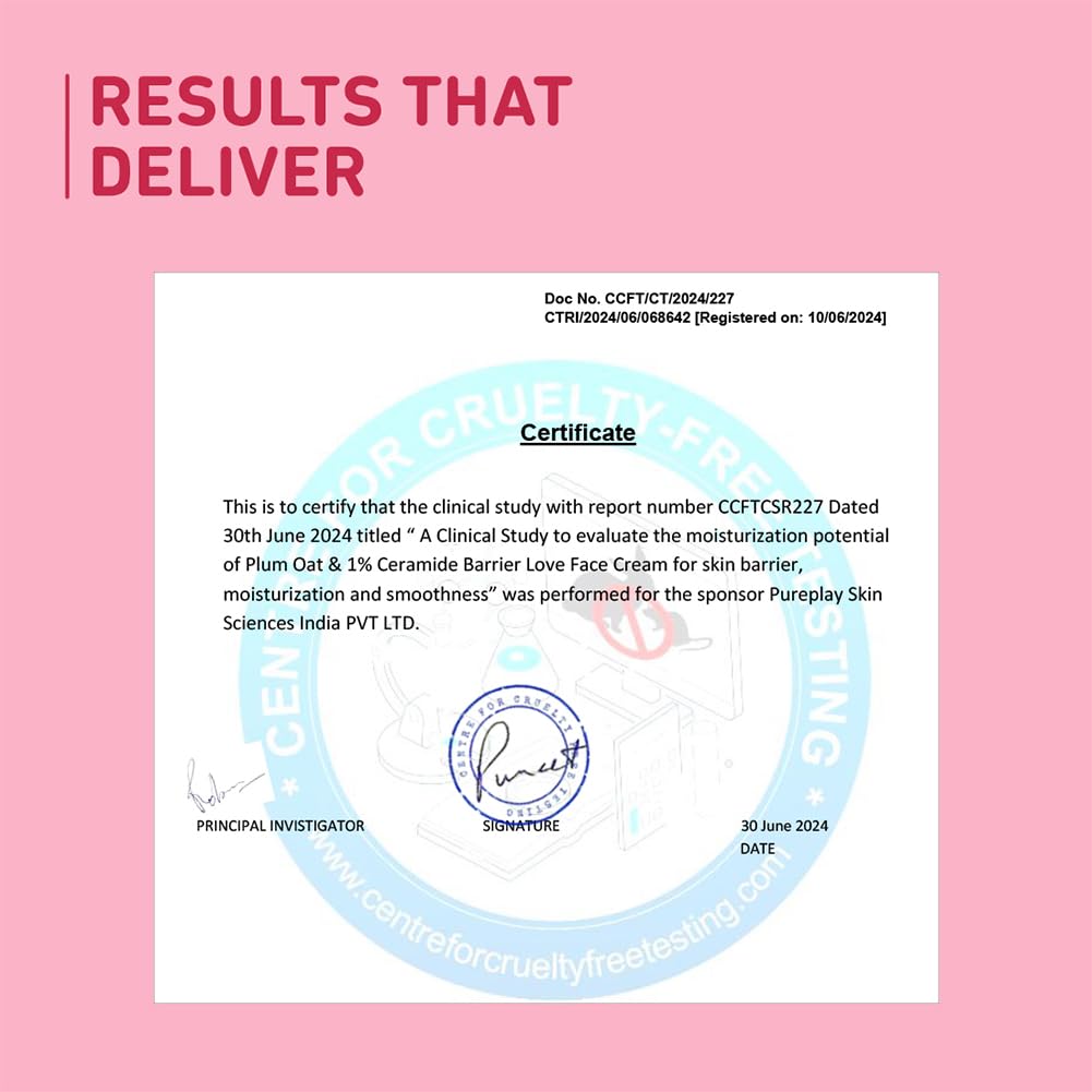 Reduces Moisture Loss (TEWL): Enriched with a blend of 10 high-performance emollients, the cream forms a protective layer that reduces Trans Epidermal Water Loss (TEWL), providing 3x hydration that lasts all day.
