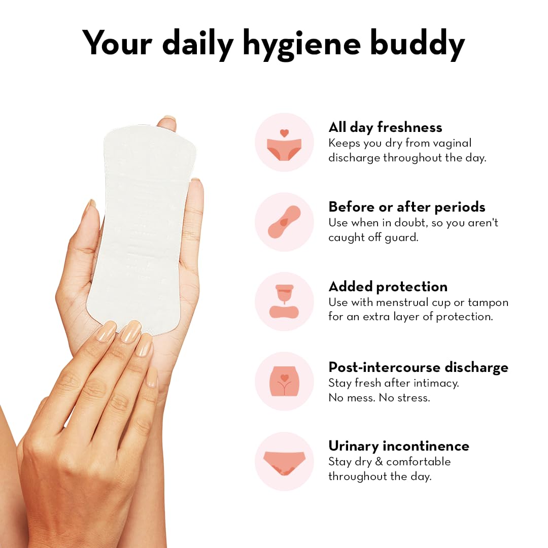 ULTRA-SOFT AND ETHICALLY-SOURCED – Liner Pads for Women: Our all-natural, ultra-soft cotton topsheet is dermatologically tested to keep you dry and comfortable all day long. These liner pads are also ethically-sourced, giving you peace of mind with every use.