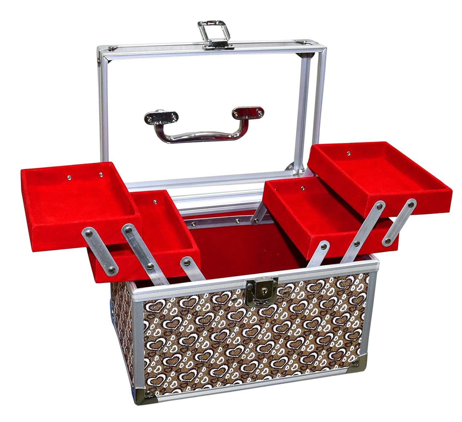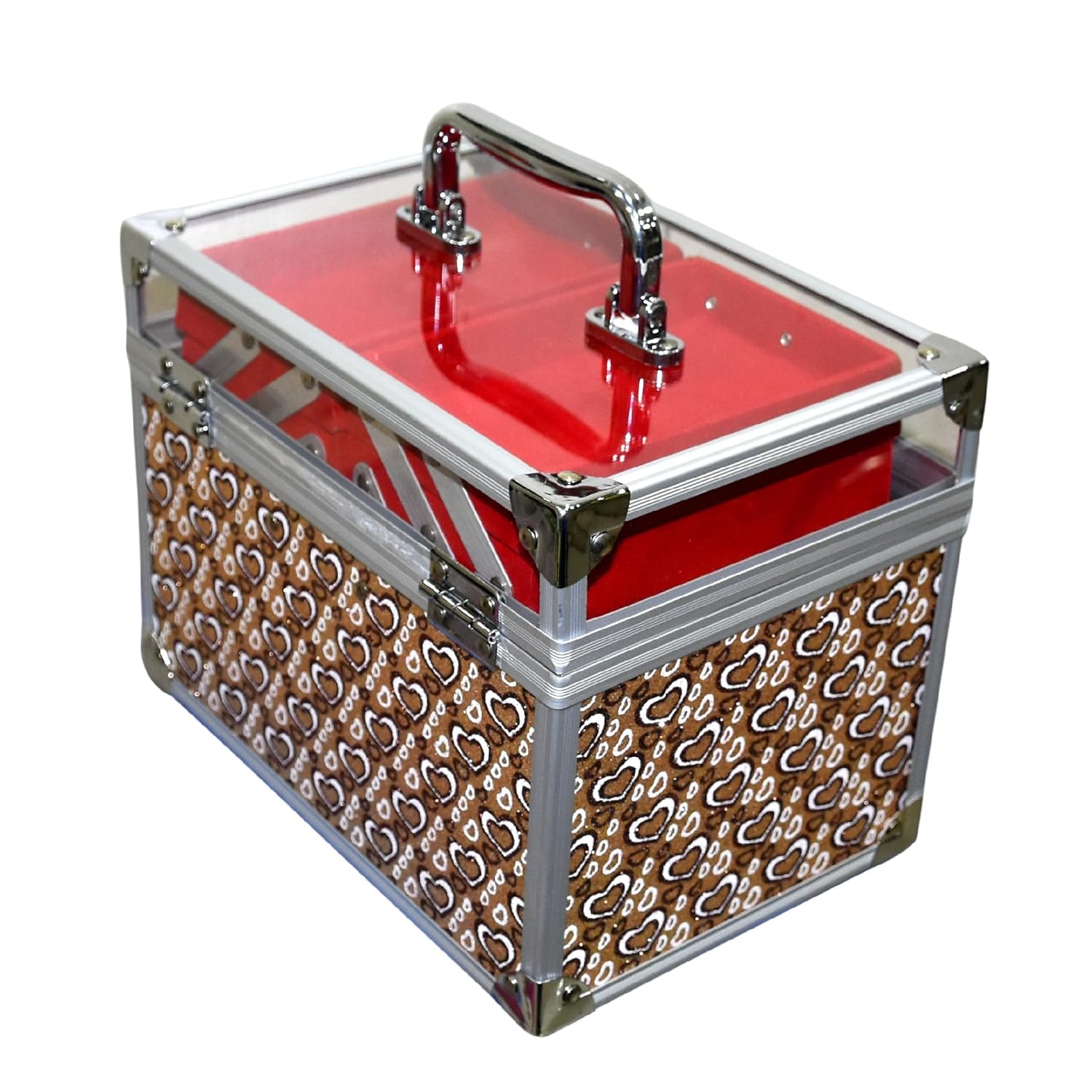 Pride large aluminium framed Jewellery vanity case, with a faux leather effect covering and perfect for storing make up, Jewellery, bangles, cosmetics and toiletries. It comes with robust design, easy grip carry handle, faux maroon suede interior for a luxury finish and a key lock to keep your items safe and secure. A stunning vanity case crafted beautifully for professionals and perfect for home use. This gorgeous cosmetics/Jewellery case is made from silver hinges which guarantees durability. The stylish handle also ensures easy transportation with its lightweight nature. The case comes with a key lock, not only complementing the hinges but provides ultimate security, for example when taking it away for the weekend, you know your cosmetics will be safe and secure. A must have for sorting make up, beauty products, jewellery And More!!