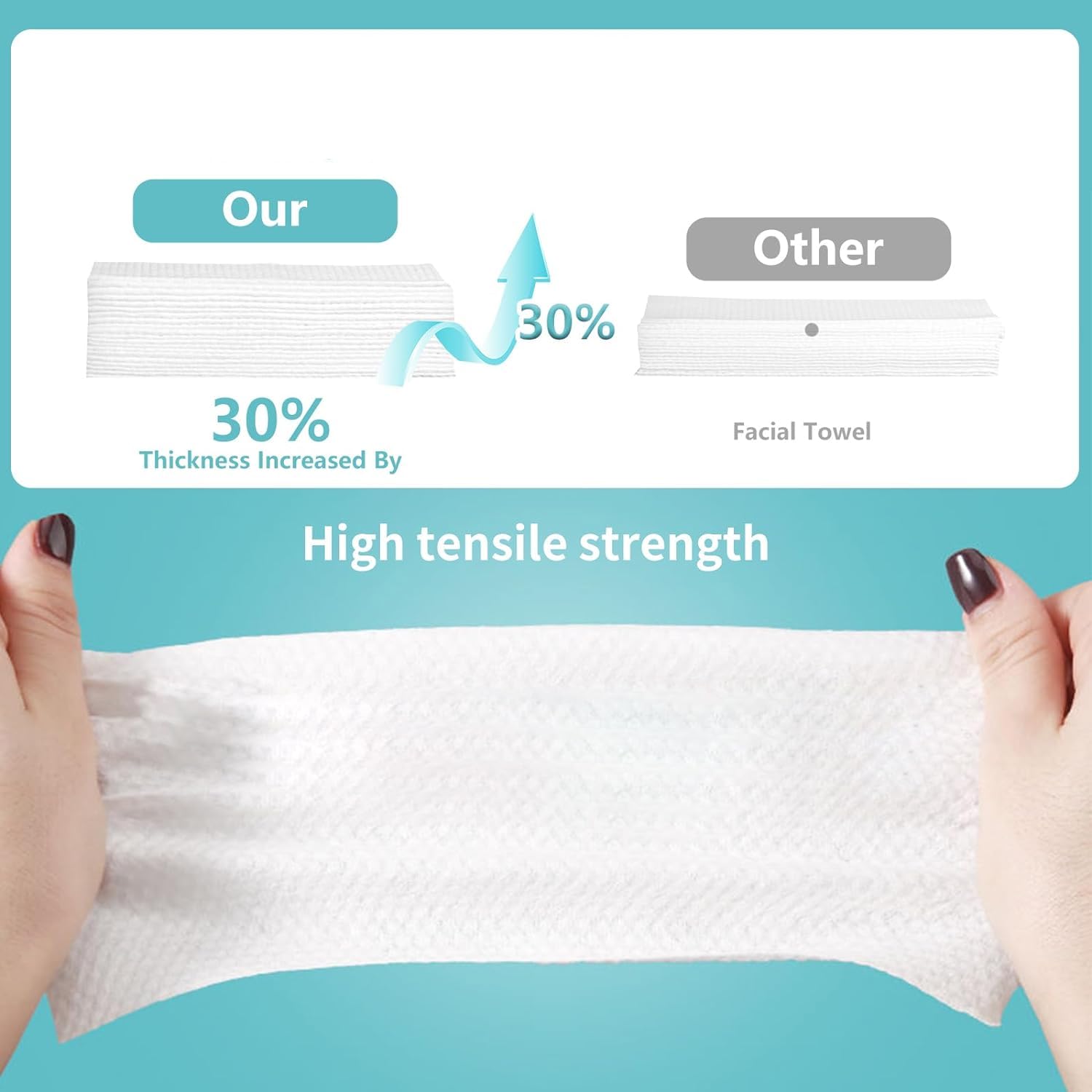 SAFE FOR ALL SKIN TYPES – Our disposable face towels are free from harmful chemicals, making them gentle and safe for all skin types. They’re also hypoallergenic and lint-free, making them an excellent choice for sensitive or acne-prone skin. Even babies can use them safely!