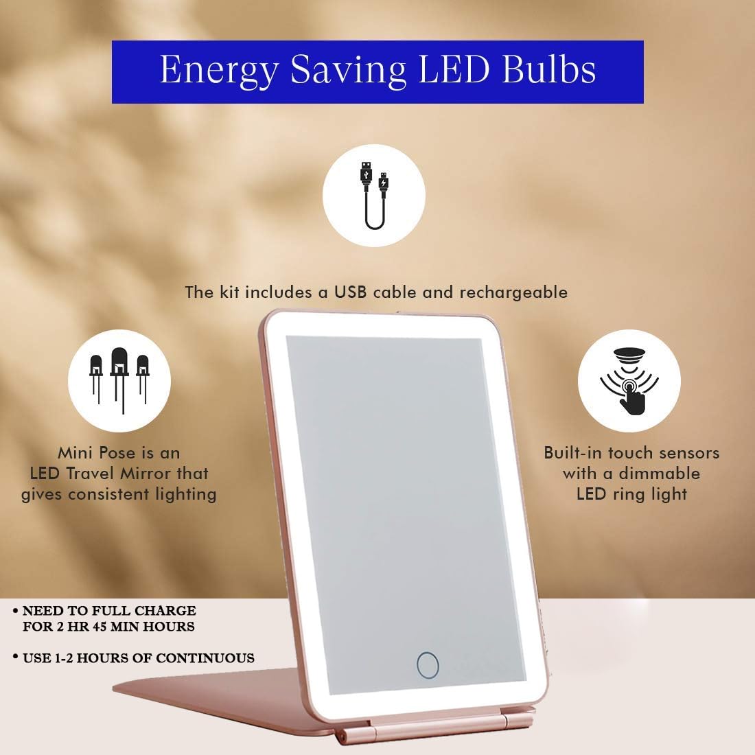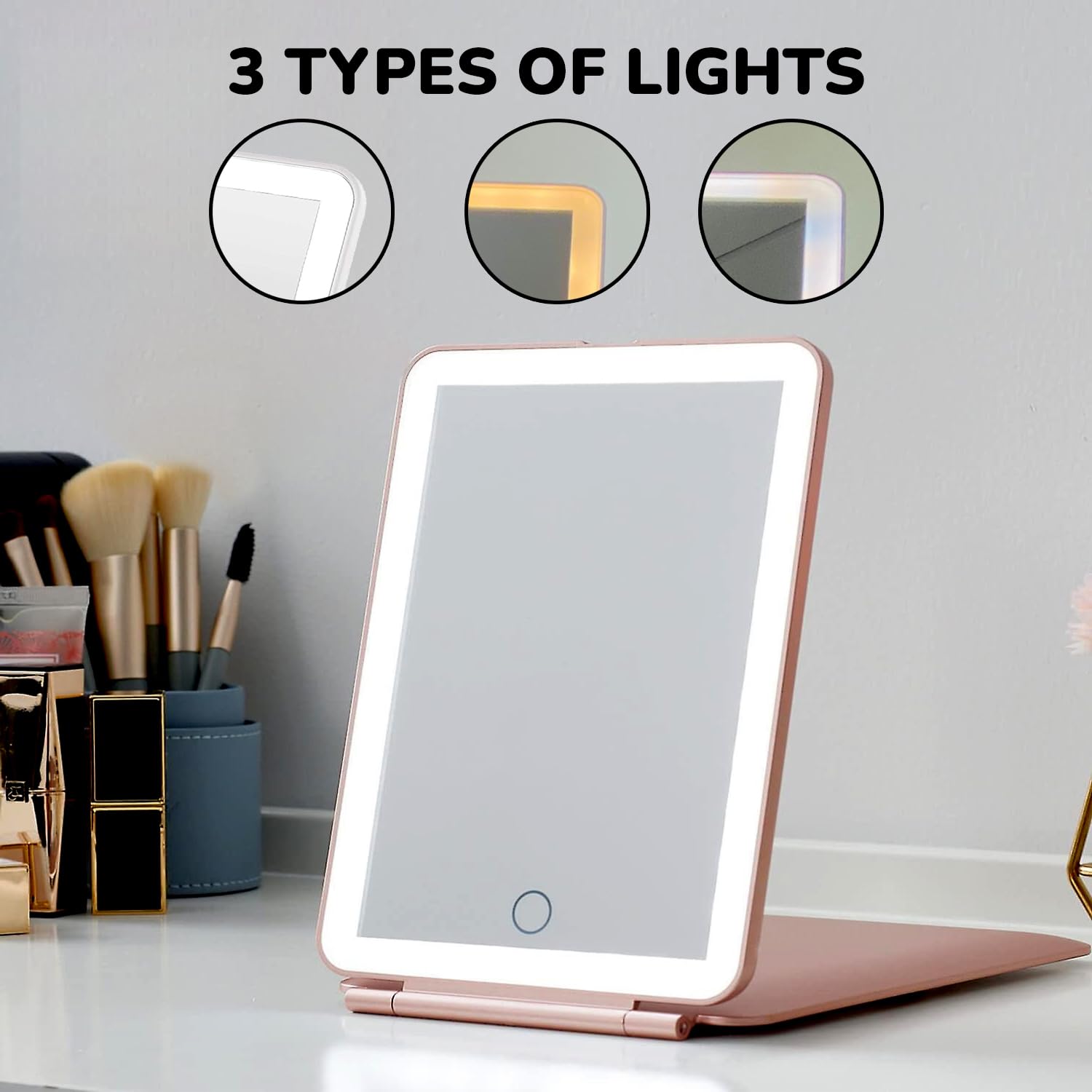**Travel Makeup Mirror with Light:** Slim, lightweight, and iPad Mini-sized, this vanity mirror is perfect for travel. Easily fits into your bag, allowing you to use it anywhere or at home.