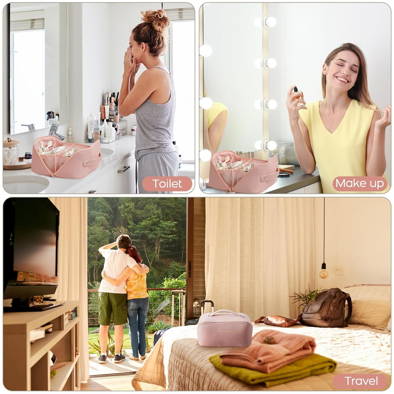 PRACTICAL: The Large makeup bags have enough space to store your makeup accessories, such as makeup brush, lip gloss, lipstick, eye shadow, makeup plate, perfume, mascara, nail polish, nail tools, toothpaste, toothbrush. Not only as a toiletry bag, but also as an accessory storage bag. Become a must -have for daily work, everywhere.