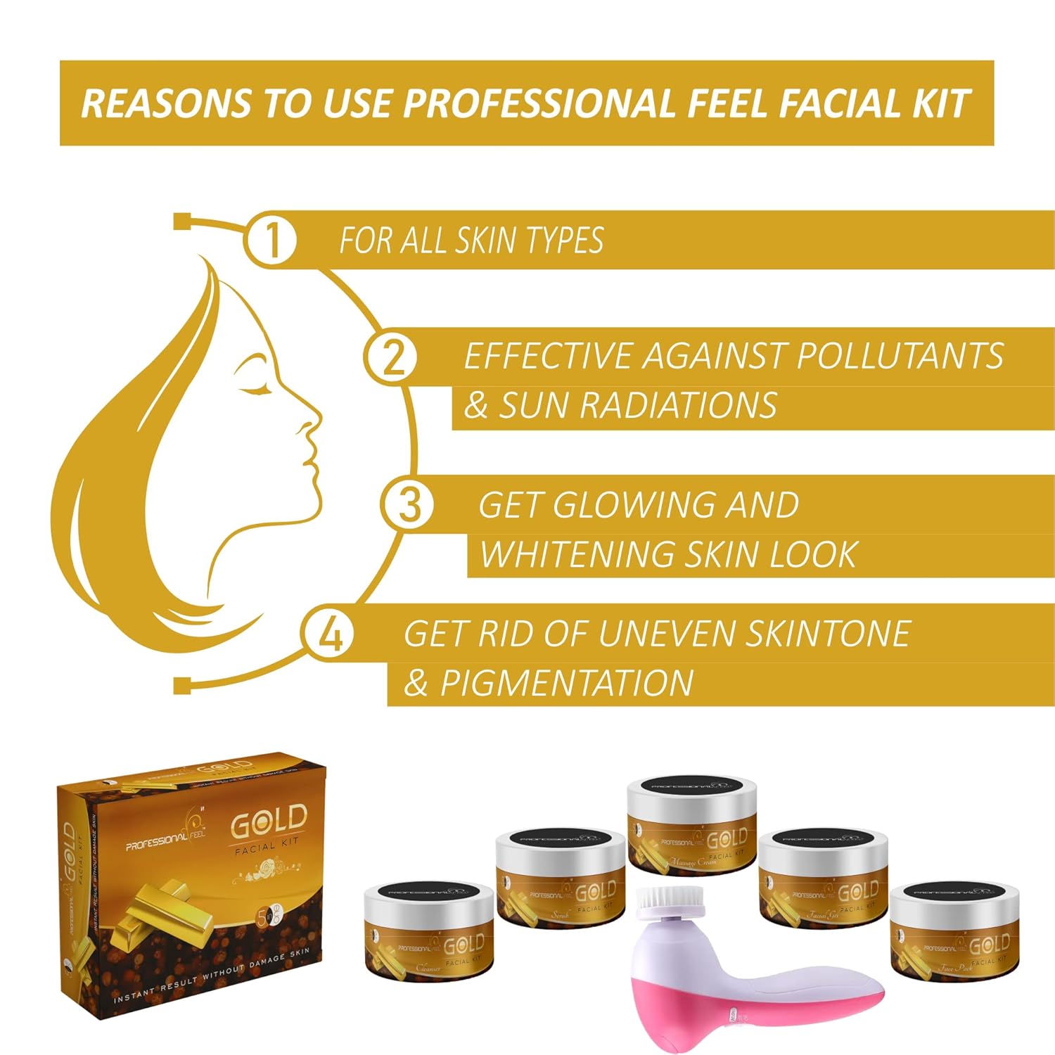 Professional Feel Gold Facial Kit is the complete package of cleansing milk, scrub, massage gel & face pack so, gives you a precise facial at home with fewer efforts. Also, formulation of each product is prepared with skin-friendly ingredients that help maintain natural health of the skin, reveal skin’s real glow and protect from other skin infections. Every product is made by considering both modern and old Ayurvedic methodologies so that you can get ultimate facial experience.
