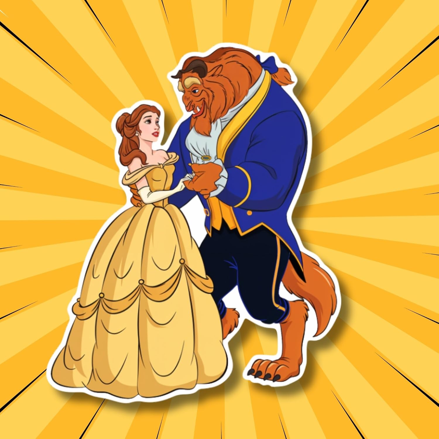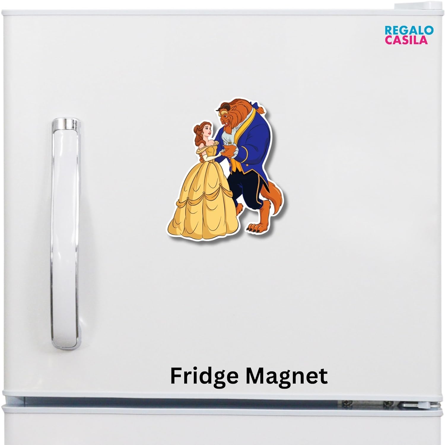 Whimsical Beauty and the Beast Design: Bring a touch of Disney magic to your kitchen with this charming magnet, featuring a colorful and playful illustration of Belle and the Beast in a romantic dance.
