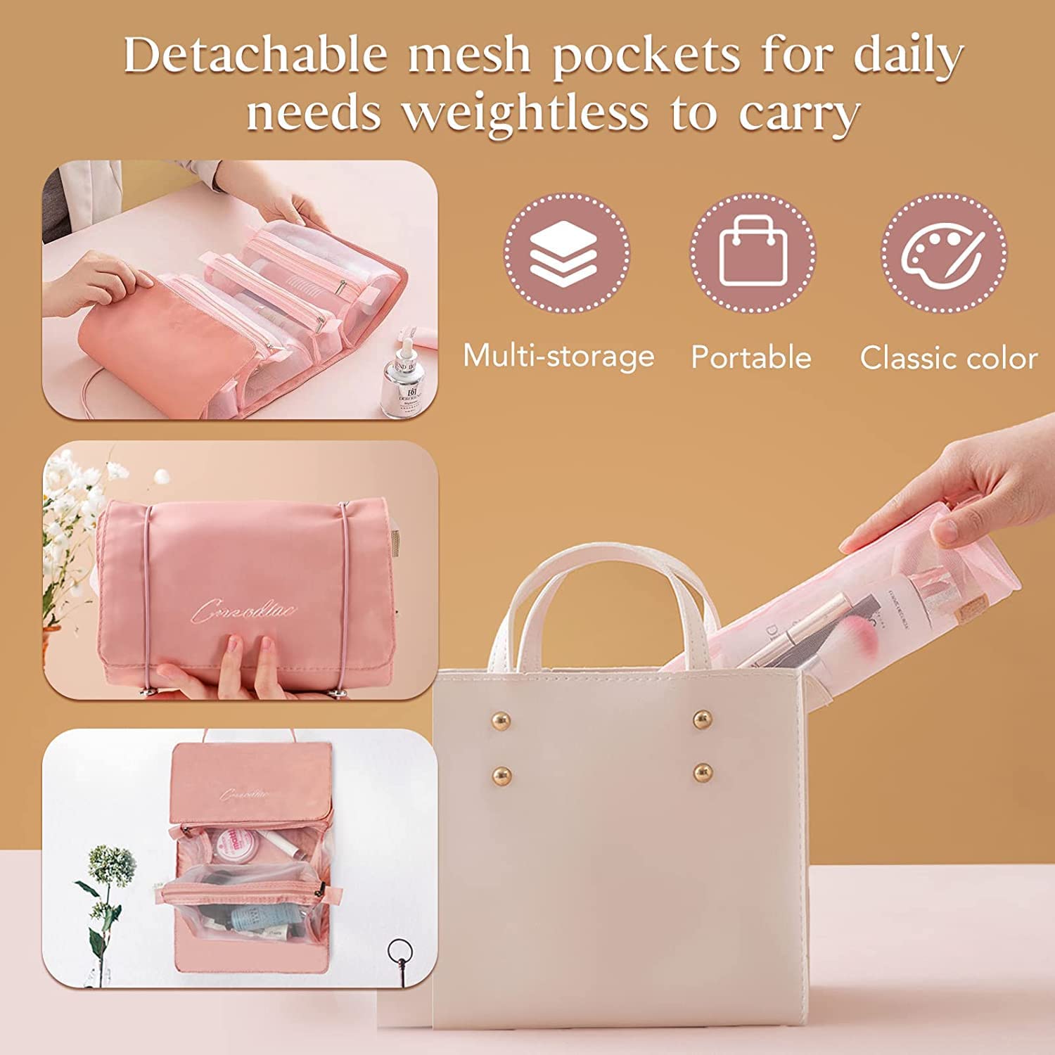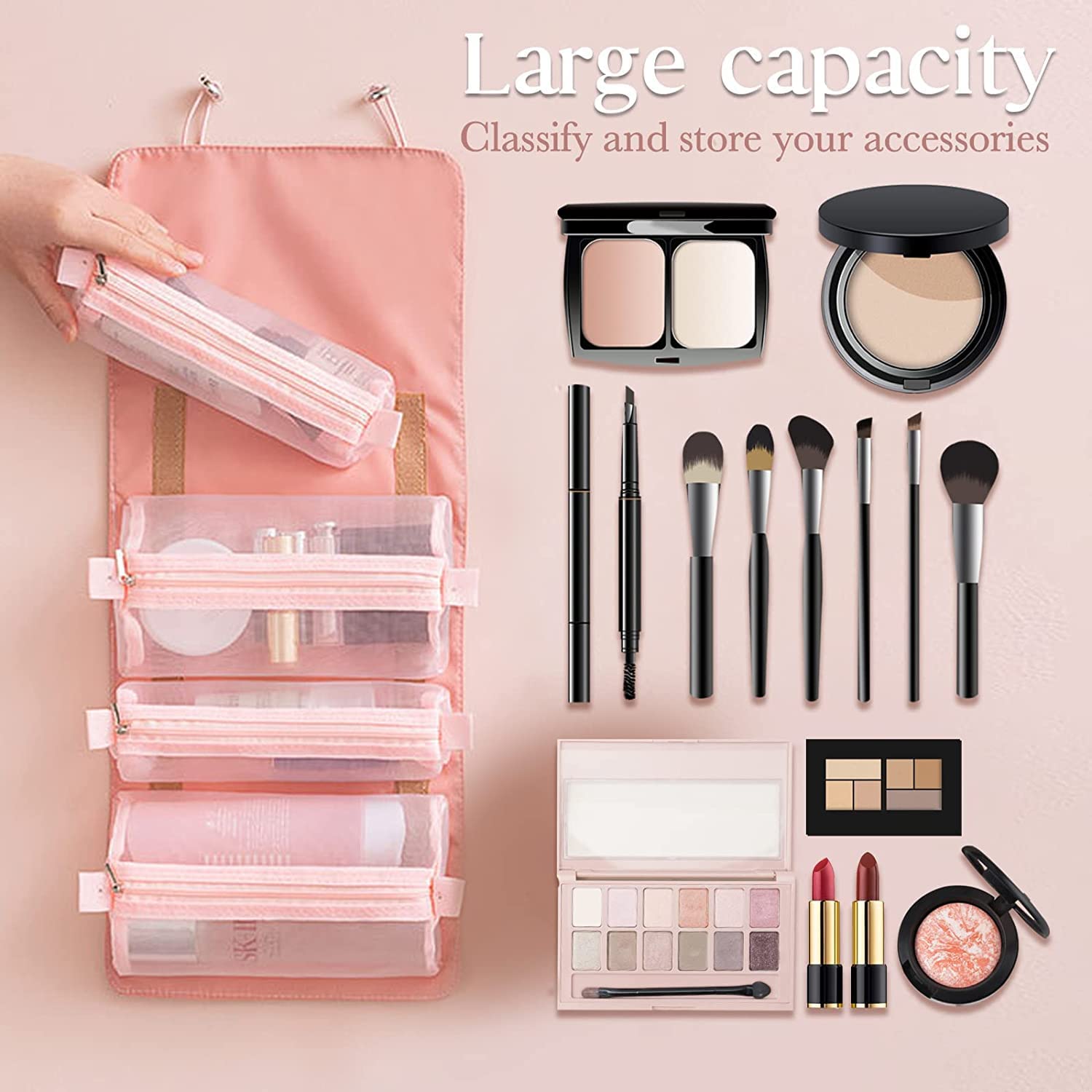 Classified Storage: 4-in-1 transparent separate compartments with zippers allow you to sort and store cosmetics and toiletries that you need to take with you. Transparent breathable mesh bag can let you at a glance, easy to find what you need. Suitable for your two week trip