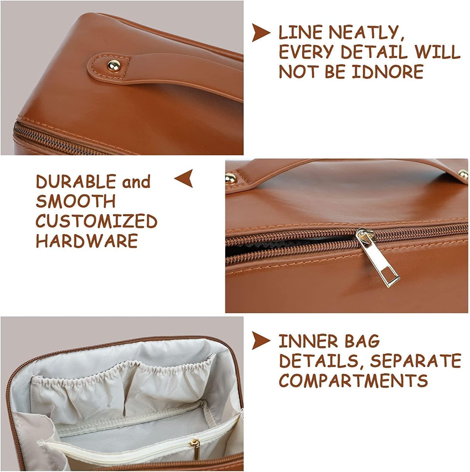 【PU Leather makeup bag function】 : Portable and Lightweight design with handle, Made of high-quality soft PU leather fabric, strong thickness make the bag more durable and easy to clean, special water-resistant surface to prevent internal products from getting wet.No need to worry about messy leaks when traveling.