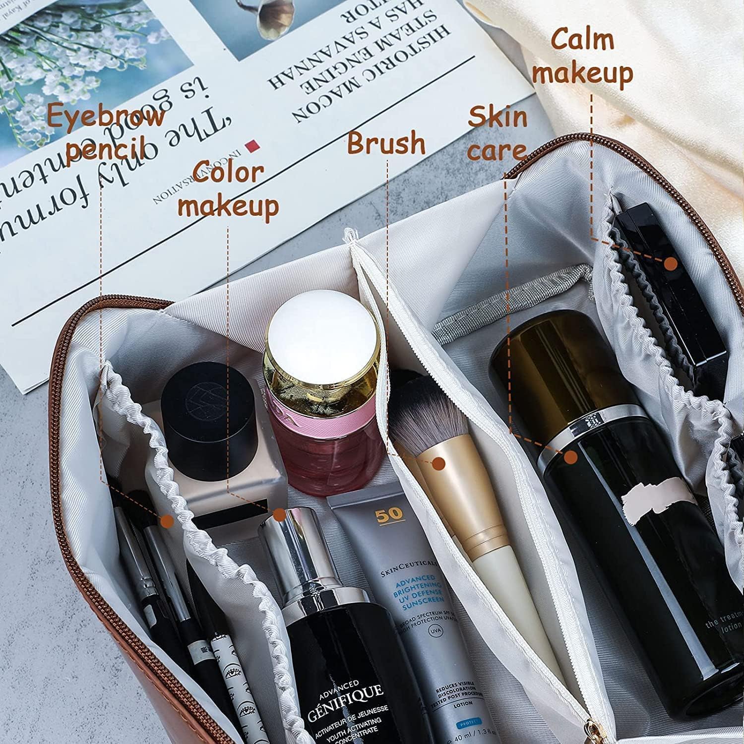 【High-Quality Materials】 : Travel makeup pouch made of easy-to-clean PU leather fabric, special water-resistant surface to prevent internal products from getting wet.