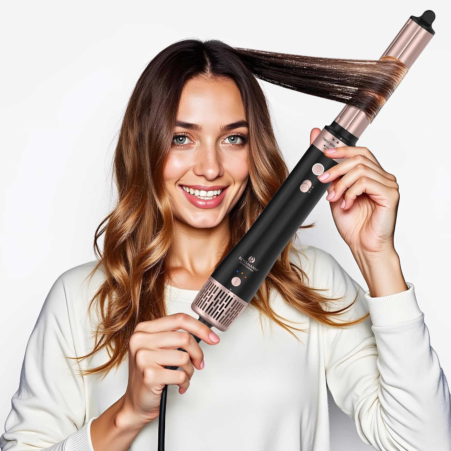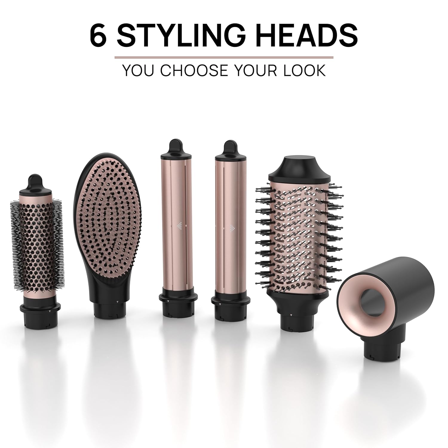 ALL-IN-ONE AIR STYLING SOLUTION: Enjoy versatile styling with our 6 IN 1 MULTIFUNCTIONAL AIR STYLING SET, featuring a hair dryer, rotating curling irons, hair dryer brushes, and a hair straightener, effortlessly catering to all your styling needs