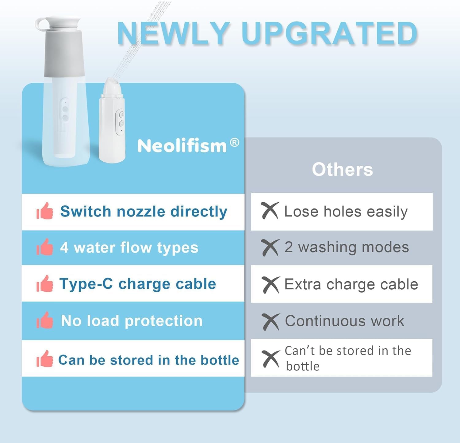 💙 EQUIPPED WITH WATER BOTTLE: PP material, Neolifism rechargeable portable bidet bottle can be filled with hot water. No cold water stimulation in winter. Compare to peri bottle, it does not be deformed by hot water.