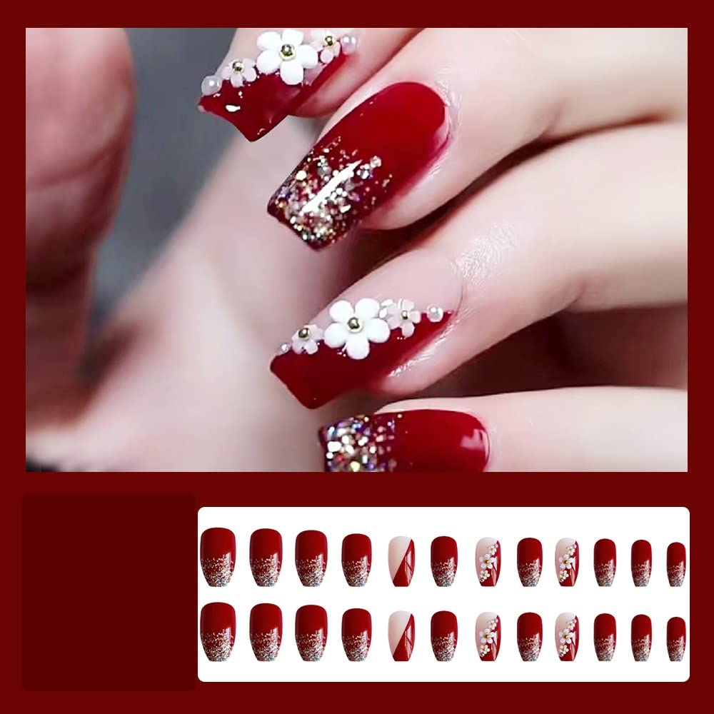 Perfect gift:Cute fake nails suitable for various social occasions great for nails salon,DIY home nails art.Perfect to be used on wedding ,prom ,dating,any function and they also suitable for Halloween, Christmas ,Valentine’s Day and Marriages, get to gather and other festival.Wonderful as gift for wife,sister,girlfriend,family and friends