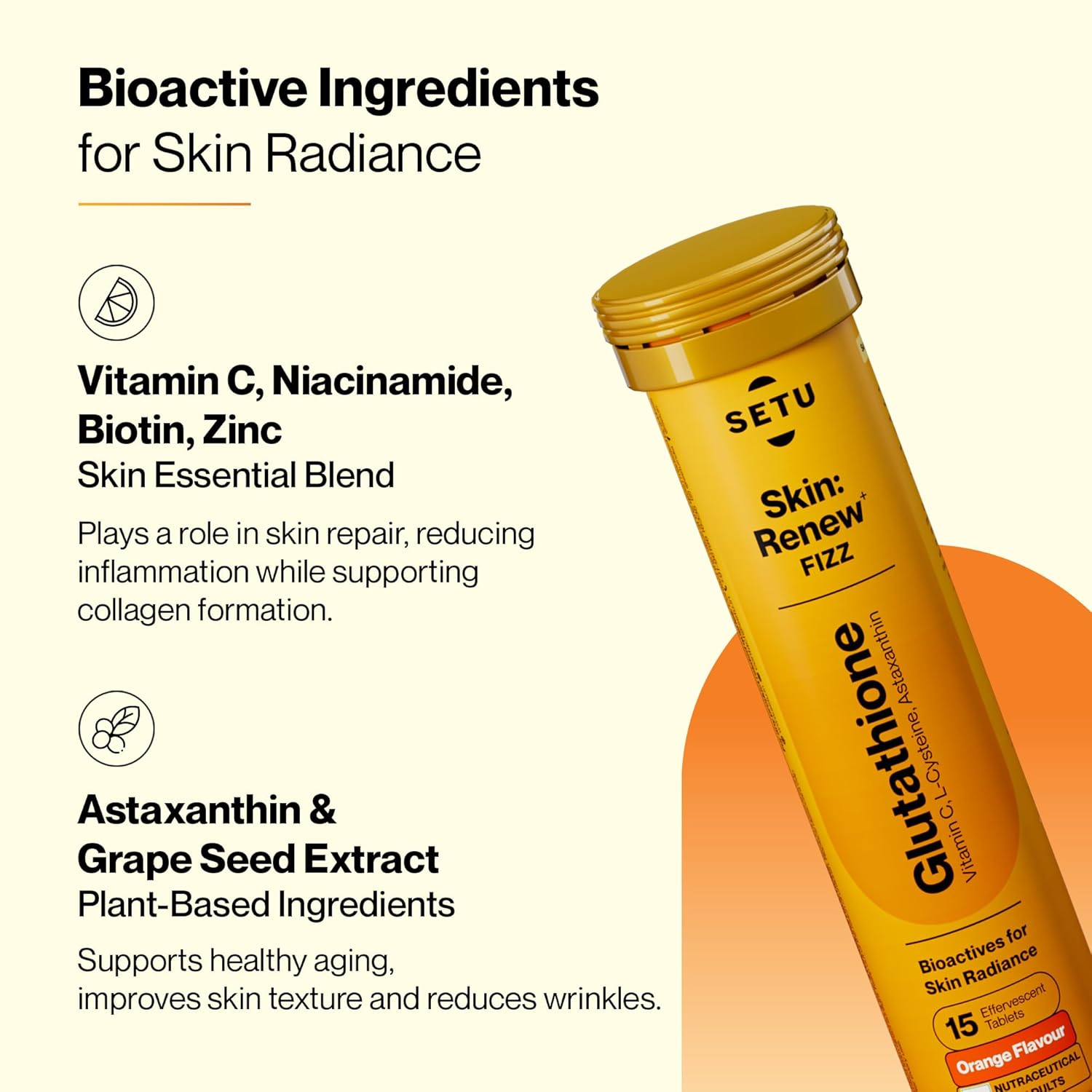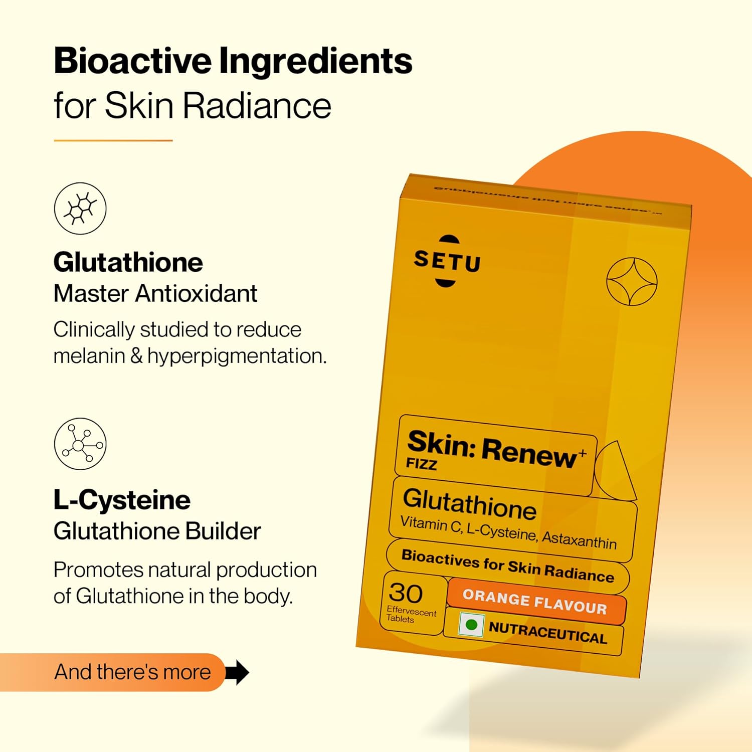 𝗥𝗔𝗗𝗜𝗔𝗡𝗧 𝗦𝗞𝗜𝗡 𝗪𝗜𝗧𝗛 𝟴-𝗜𝗡-𝟭 𝗕𝗟𝗘𝗡𝗗 𝗢𝗙 𝗦𝗘𝗧𝗨 𝗦𝗞𝗜𝗡: Setu Skin Renew Glutathione’s 8‑in‑1 formula blends 500mg – glutathione, vitamin C, L‑cysteine, astaxanthin, niacinamide, biotin, zinc, and grape seed extract to reduce hyperpigmentation and boost radiance. These glutathione skin brightening tablets build natural glutathione, deliver fast antioxidant support for visibly glowing skin, reduce wrinkles, and enhance skin texture.
