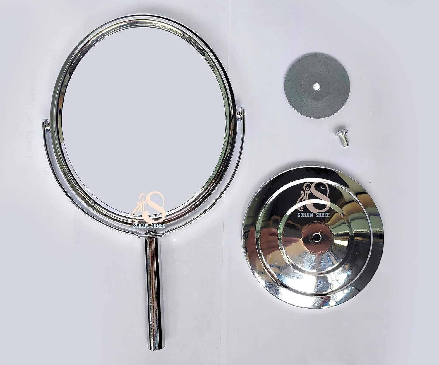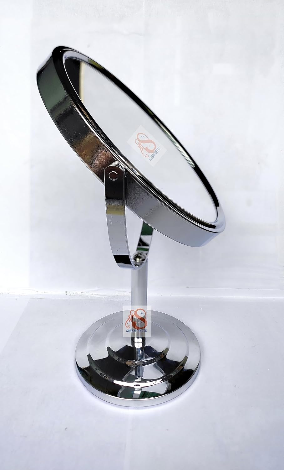 Dual Sided Makeup Mirror with 1x + 5x Magnifying Two-sided 1x/5x Magnification Design 5X magnification is great for detail work such as applying eye makeup or treatment of acne, blackheads and other facial detail. High Quality Makeup Magnifying Mirror Double-sided HD lens, with screw and movable washer, is stronger and more flexible Stainless steel, surface galvanizing process 360 degree rotation, 5x magnification. 360 Degrees Rotation & Space Saving 360 Rotating Function can be freely adjusted and fixed a perfect and comfortable viewing angle as needed. When Not in use, you can fold it and save space. Tabletop Vanity Mirror Made of silver mirror and Plastic metal frame material, it is durable. Elegant shape design, glossy surface, suitable for any occasion. Small size and lightweight, portable to carry. Mirror is 360° rotating, can be placed at any angle you like. Chrome finish. The simple and elegant mirror is suitable for theaters, families, villas, dormitories, lockers, bedrooms, bathrooms, etc. | Its very aesthetic mirror, big mirror with stand, shaving mirror for bathroom , mirror small , make up mirror , face mirror , foldable mirror it is very easy to carry or shift.