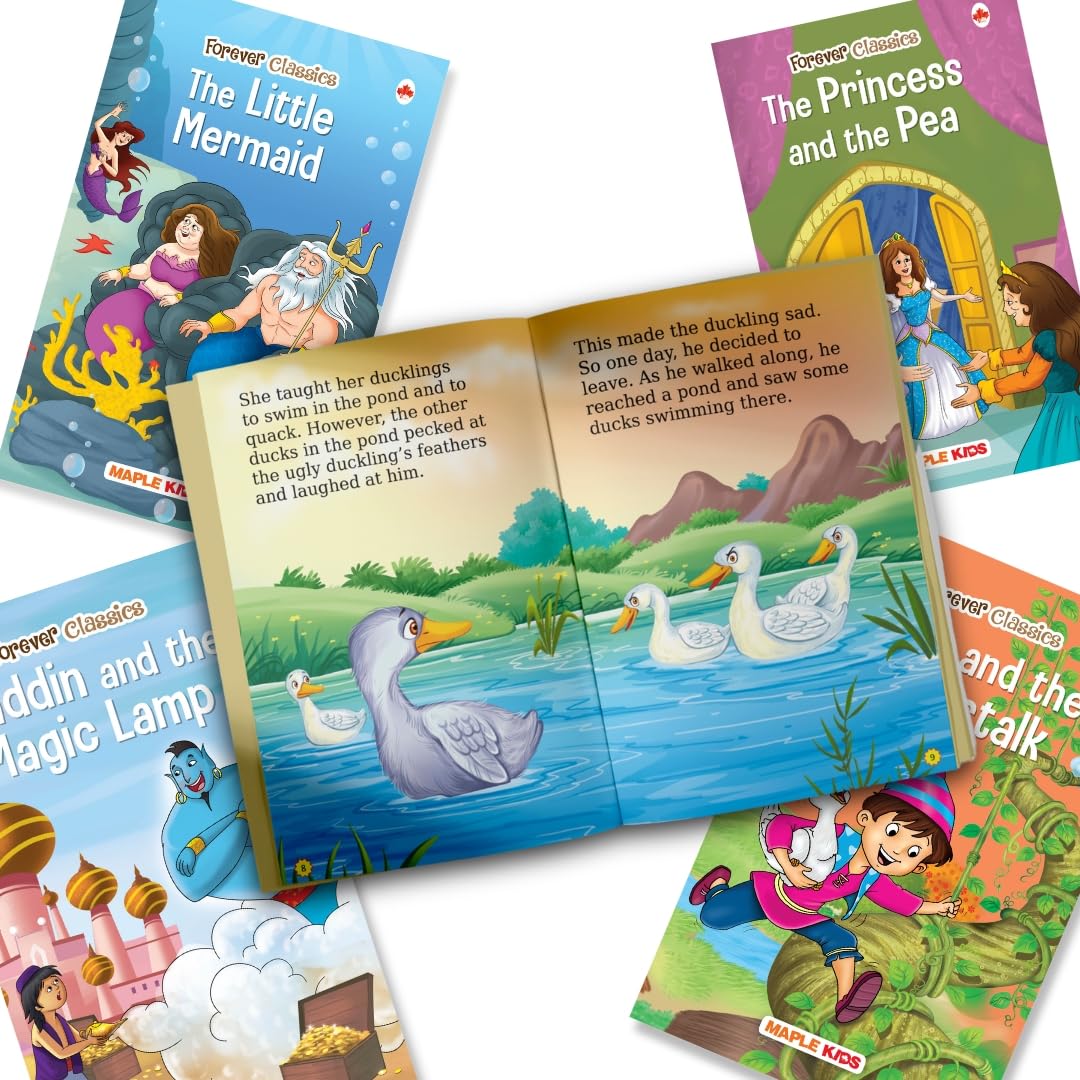 Explore the enchanting world of illustrated stories for kids with this captivating collection! Immerse young readers in timeless tales where magic reigns and dreams come alive on every page. Each story unfolds with vibrant illustrations that bring classic characters like princesses, elves, witches, giants and kings to life in vivid detail. Dive into a world where imagination knows no bounds, where brave heroes embark on daring quests and where kindness and courage triumph over darkness. These stories not only entertain but also inspire young readers to believe in the power of imagination. Discover a treasure trove of tales where every turn of the page promises a new journey into a world of wonder and fantasy.