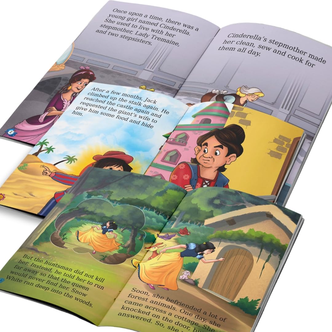 The colourful, detailed pictures capture kids’ imaginations and bring the stories to life.The large text and simple narratives make it easy for kids to read and understand.The narratives teach important values like kindness, courage, truthfulness and honesty.The set introduces readers to stories from around the world.Reading helps kids improve their language and communication skills.