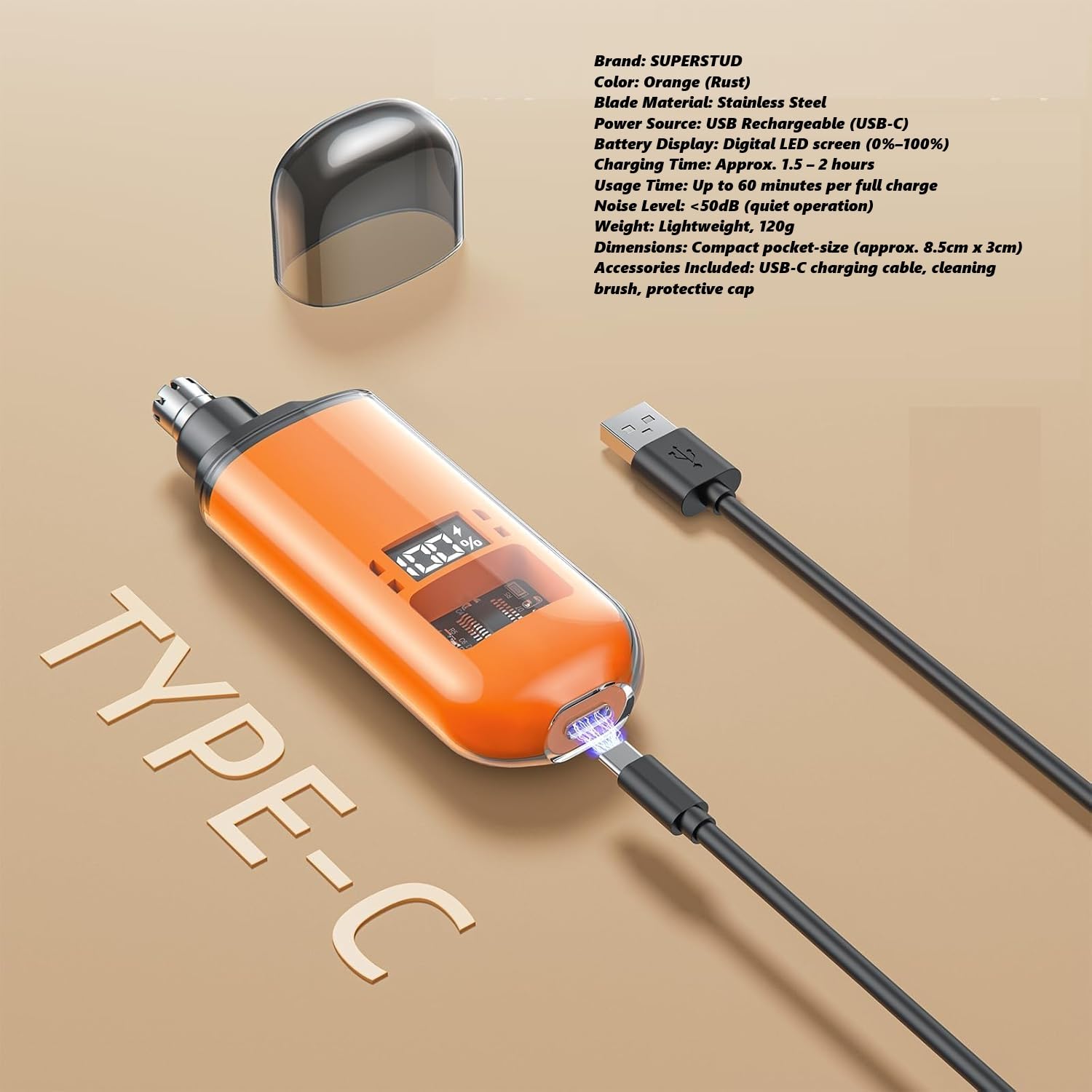 【Energy Saving & Whisper-Quiet Operation】 With Type-C convenient charging and hassle-free battery capacity, the rechargeable SUPERSTUD nose hair trimmer is equipped with a large-capacity lithium battery. It can run for more than 3 months with 5 minutes of use at a time. With operating noise less than 35db, use the nose hair clippers freely