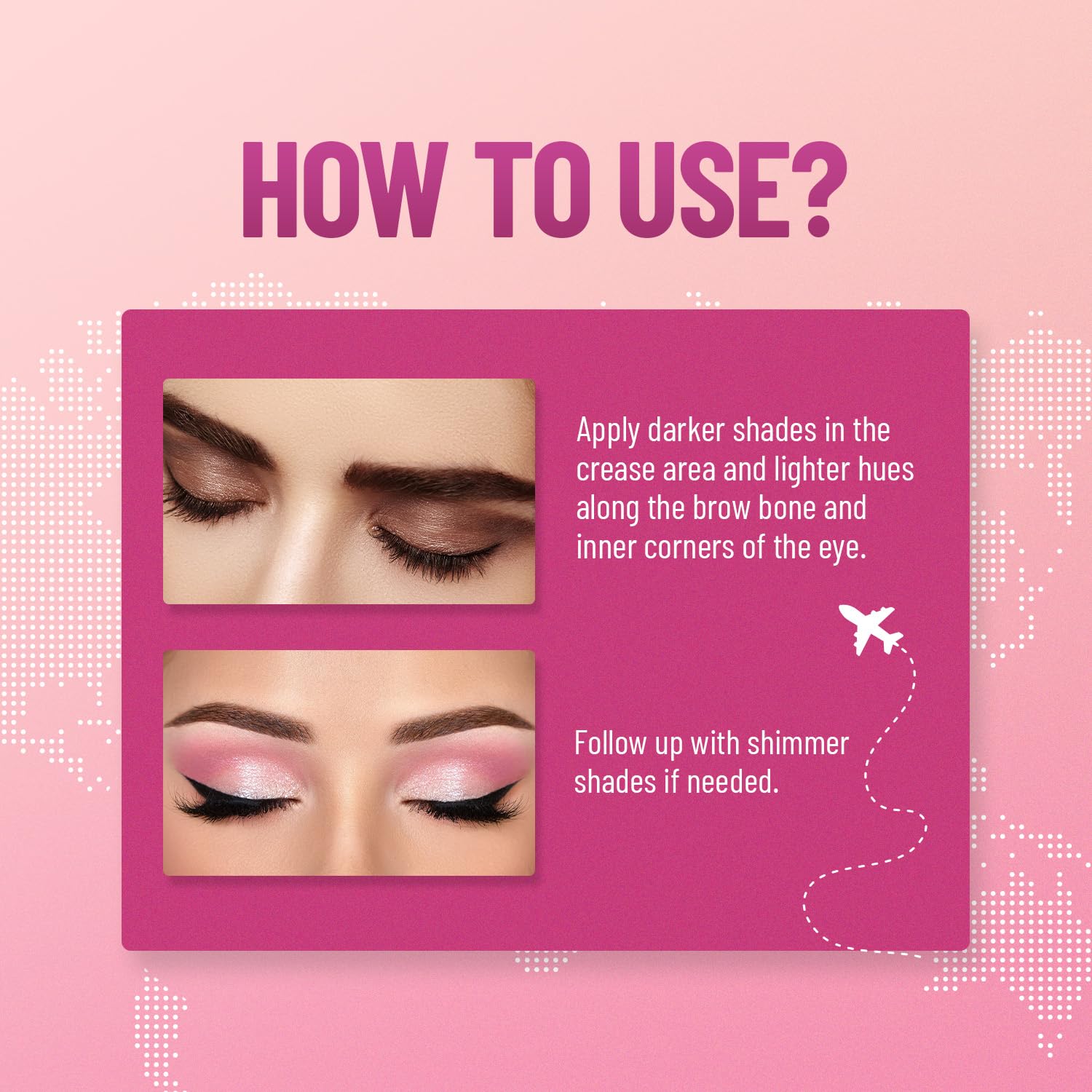 Versatile shades and finishes: The palette offers 12 stunning shades with a mix and match of matte, shimmer, and glitters to create endless eye makeup looks, just like a passport allows you to explore different destinations