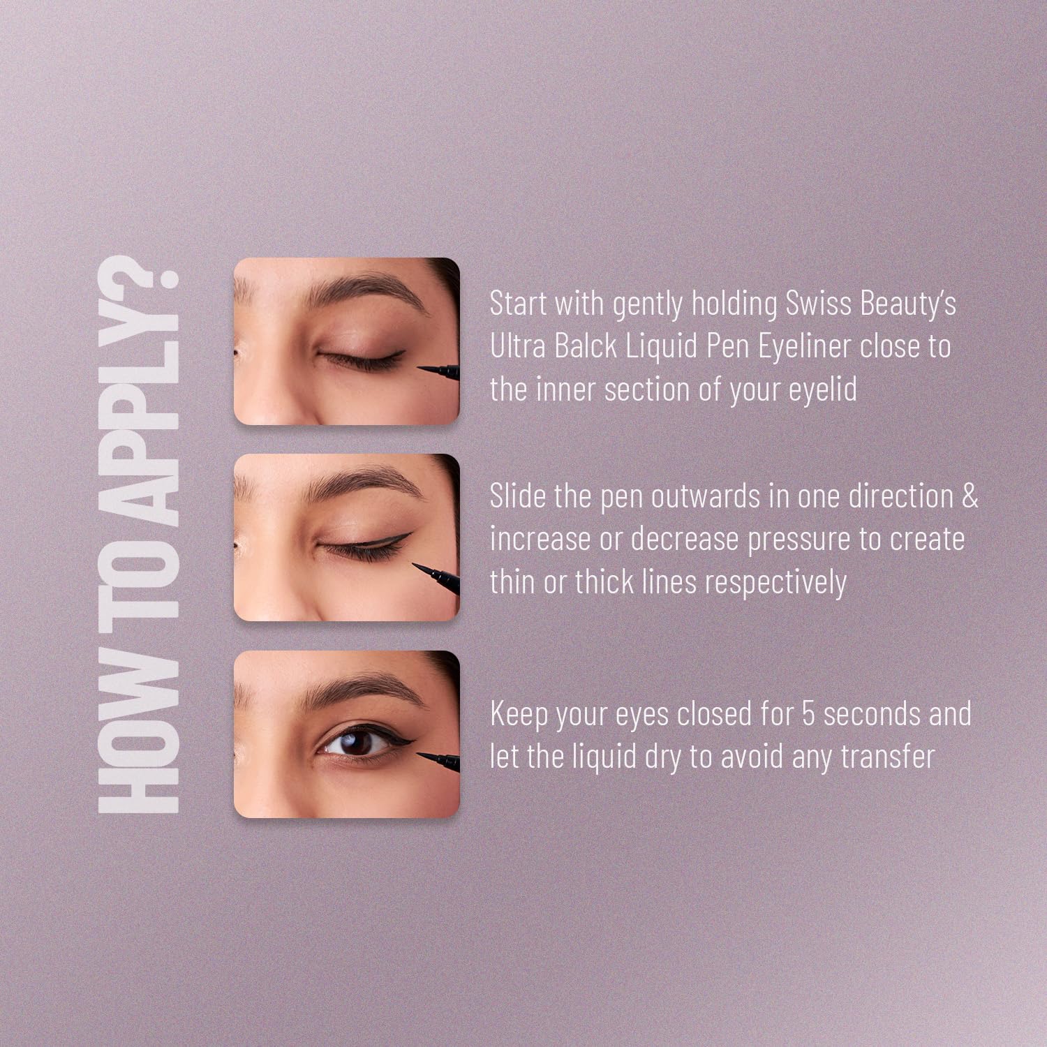 Precise Application: The customized eyeliner brush of Swiss Beauty Ultra Black Liquid Pen Eyeliner helps in the precise application of the eyeliner.