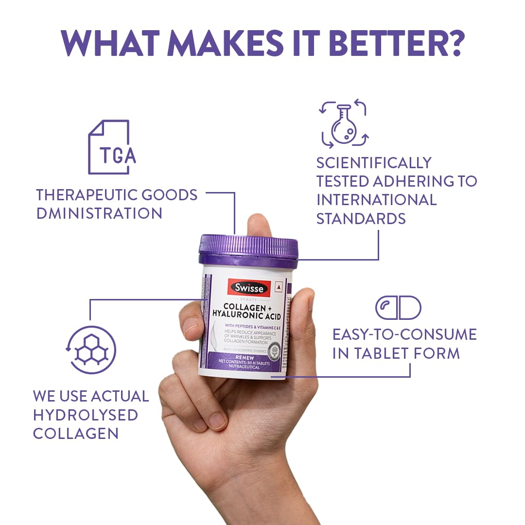 Swisse Collagen+HA works synergistacilly with Biotin to make hair & nails stronger and healthier.