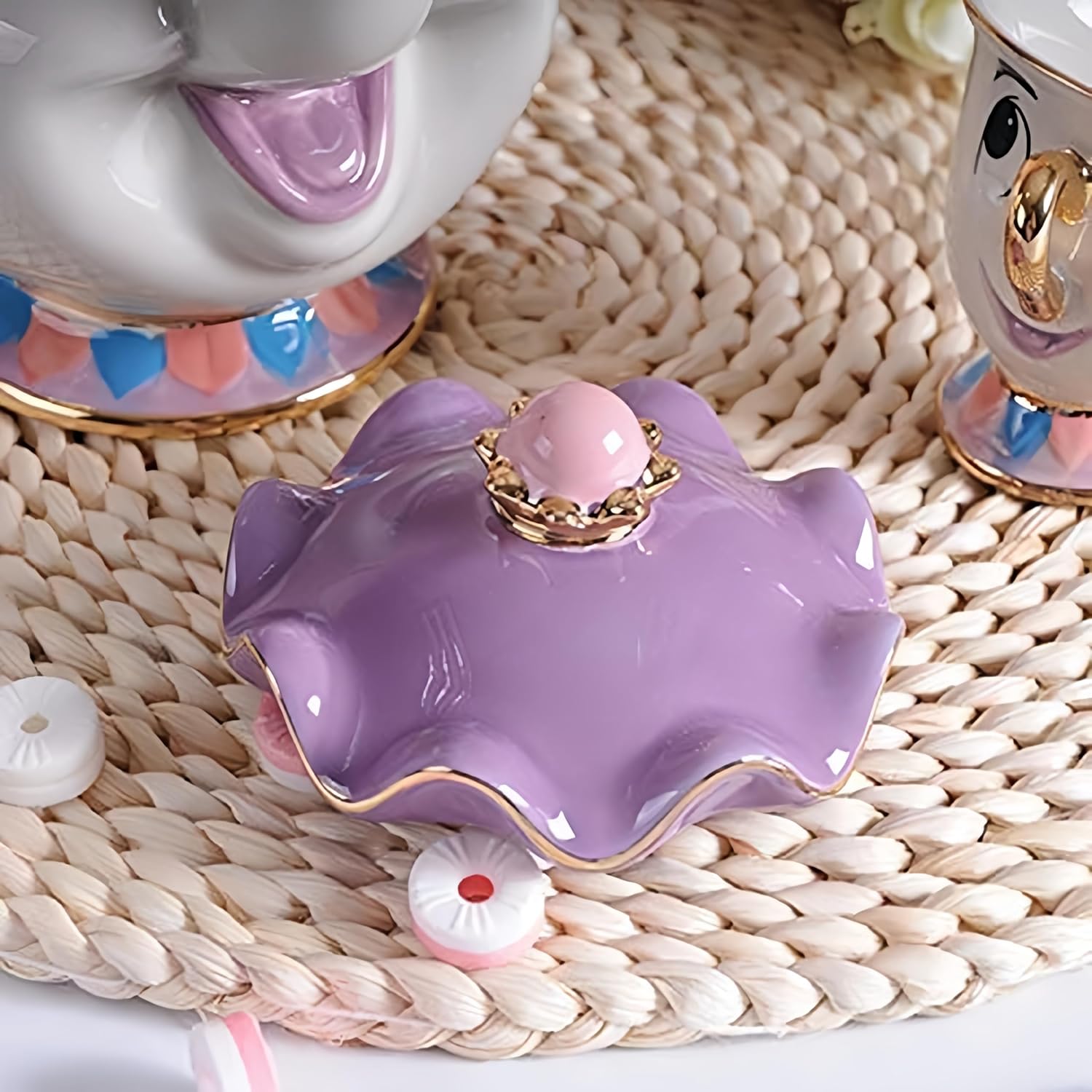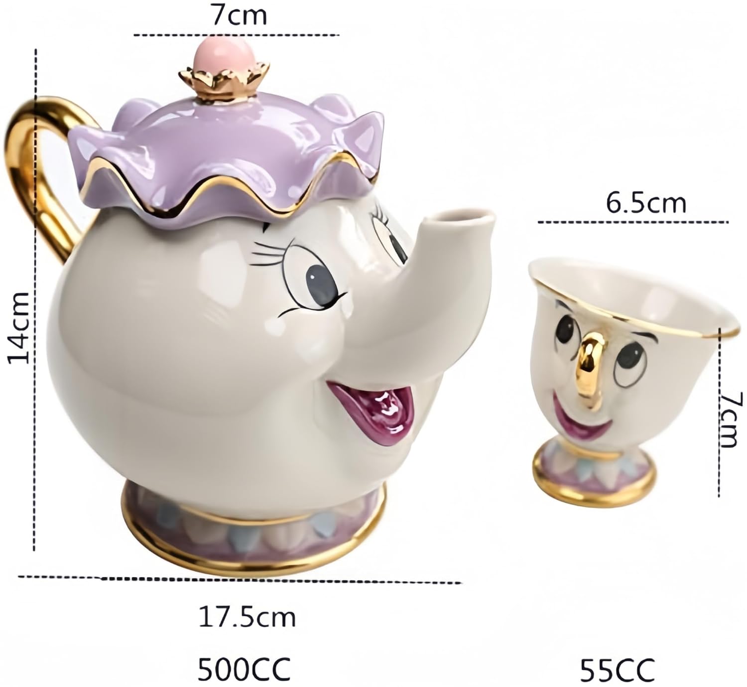 【 Food-Grade Safe Tea Set】– All the pieces of Mrs potts and chip tea set are made of high-quality porcelain clay. food safe and lead-free, light weight, strong and high durability.You can enjoy the beautiful tea set with your guests on the table. It can be filled with black tea, green tea, scented tea, milk or coffee, etc. Use it with confidence.