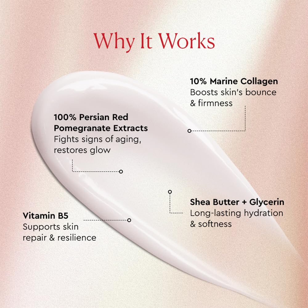 ✅ Targets Visible Signs of Ageing: Powered with 10% Marine Collagen and Pomegranate Extracts to reduce wrinkles, fine lines, and sagging skin for a firmer, youthful look.