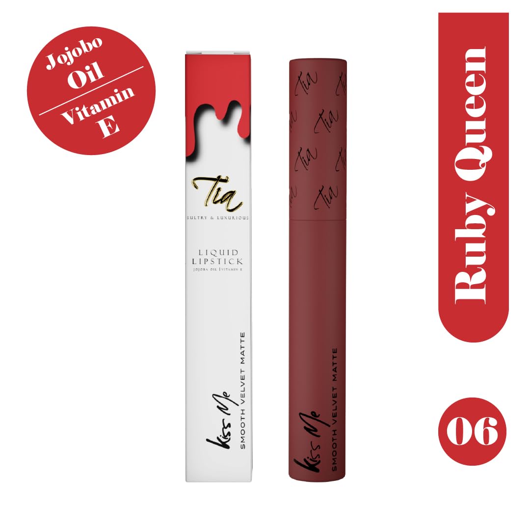 Vibrant Shade: Ruby Queen is a bold, deep red liquid lipstick shade.