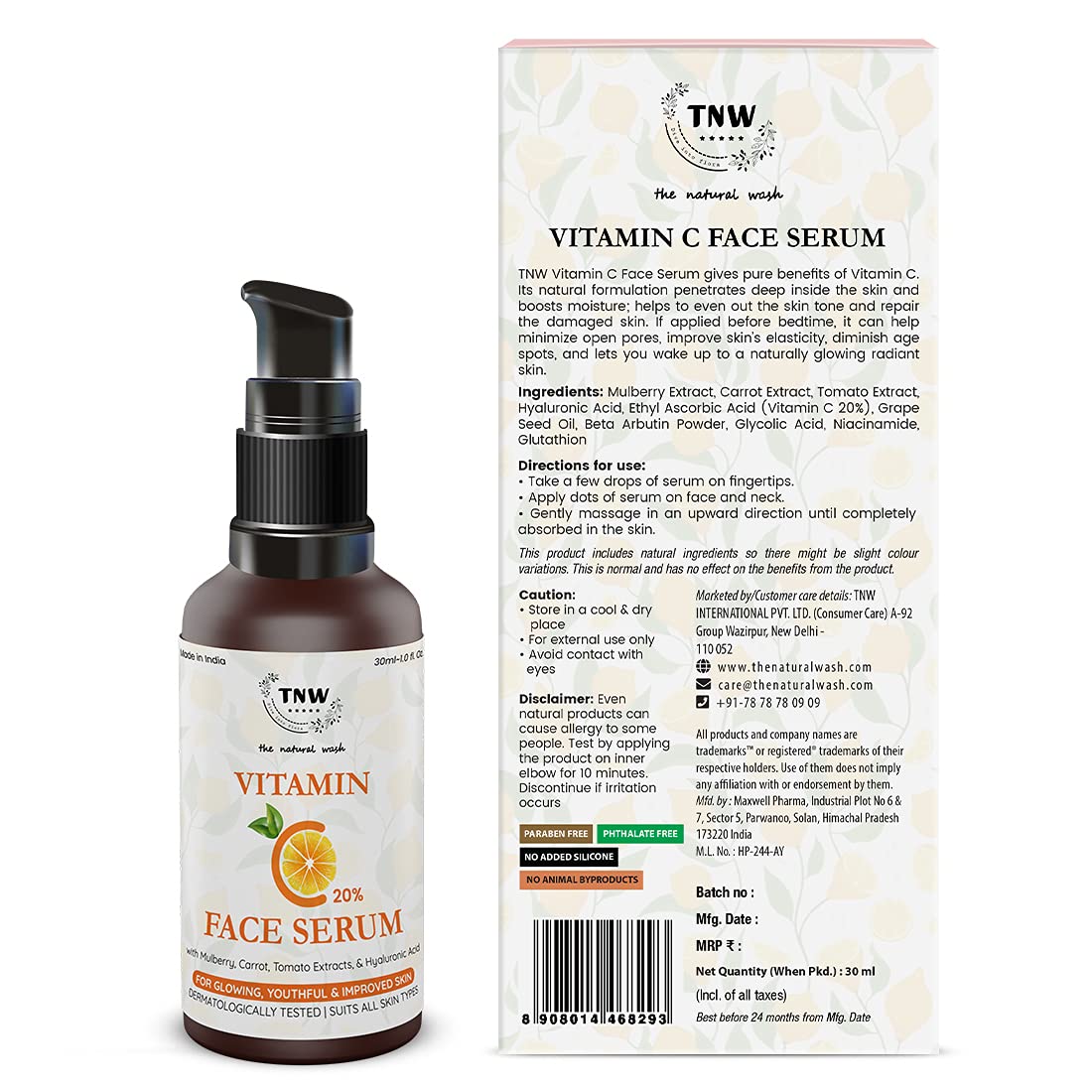 𝟐𝟎% 𝐕𝐢𝐭𝐚𝐦𝐢𝐧 𝐂 𝐅𝐚𝐜𝐞 𝐒𝐞𝐫𝐮𝐦: TNW- THE NATURAL WASH Vitamin C Face Serum boosts radiance and provides deep hydration, enhancing skin’s natural glow penetrating the skin effectively by reducing dullness & dark spots, and giving glowing & moisturising skin.