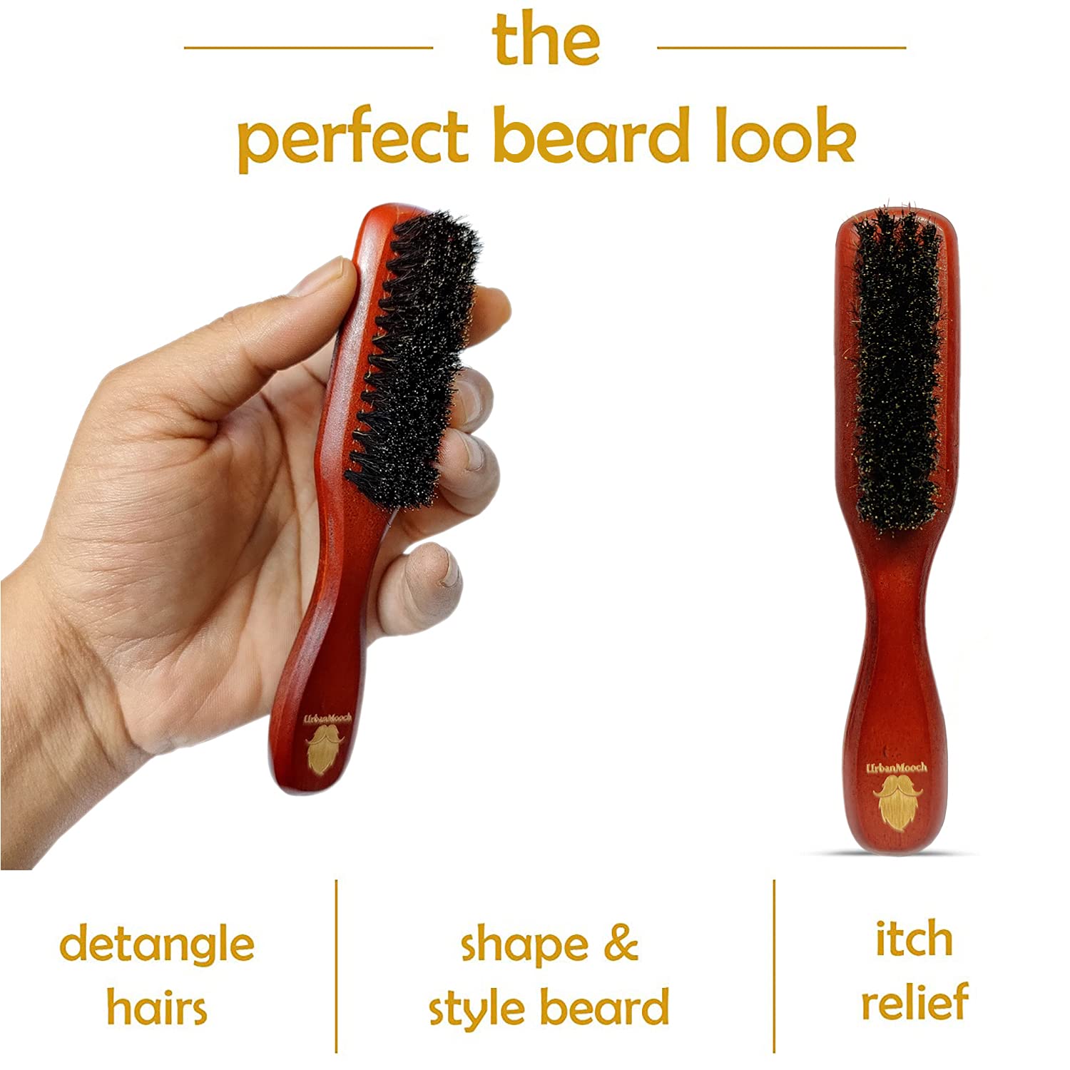 DUAL GROOMING TOOLS: Natural wooden beard comb for detangling and precise styling, paired with a professional-grade boar bristle beard brush for proper beard maintenance