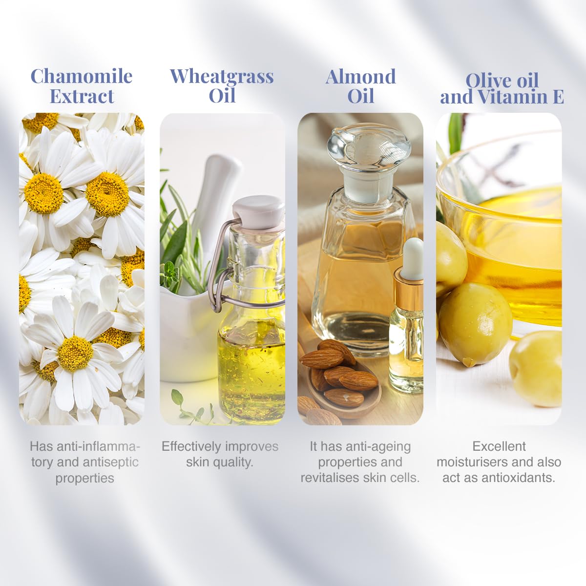 Almond Under Eye Cream contains some key Ingredients like Chamomile Extract, Wheatgrass Oil, Almond Oil, Olive oil and Vitamin E.